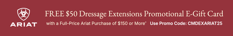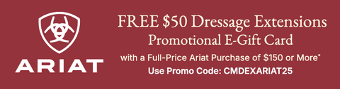 merchandise only at Dressage Extensions owned retail stores, and at DressageExtensions.com. Promotion only eligible within the United States. Promotional gift card cannot be used to purchase gift cards. Cannot be combined with any Military or USEF discounts. Not valid on previous purchases. No back orders or substitutions.
