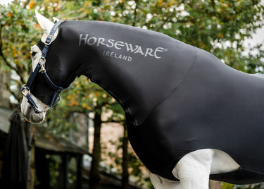 Horseware® Ireland Rambo® Slinky Hood is made from shine boosting Lycra® with an anti-static treatment for a smooth and glossy coat. Full neck, chest and shoulder coverage with a front leg arch to ensure freedom of movement. Easy to use zip system with reinforced zip guard. Minimizes chest rubbing for thin skinned or sensitive horses.