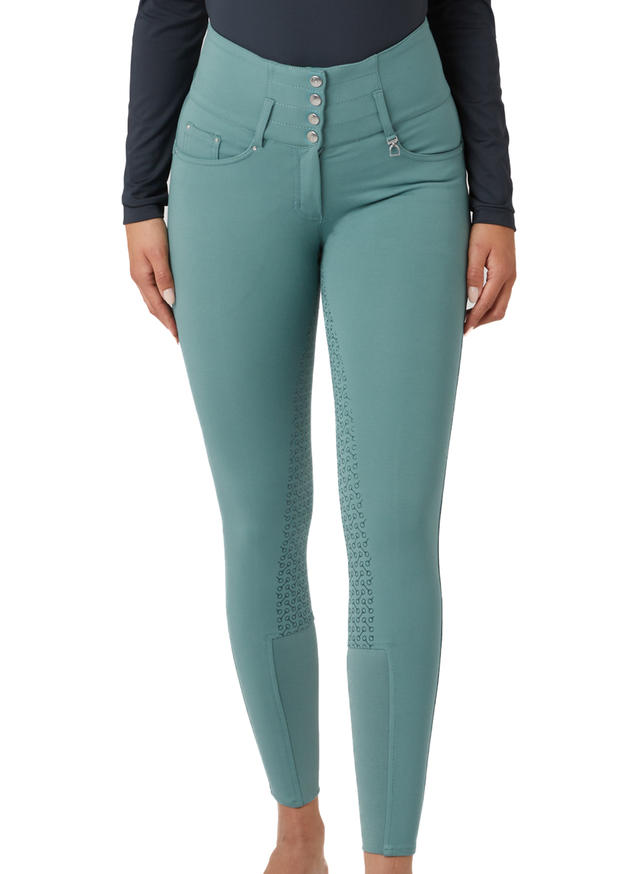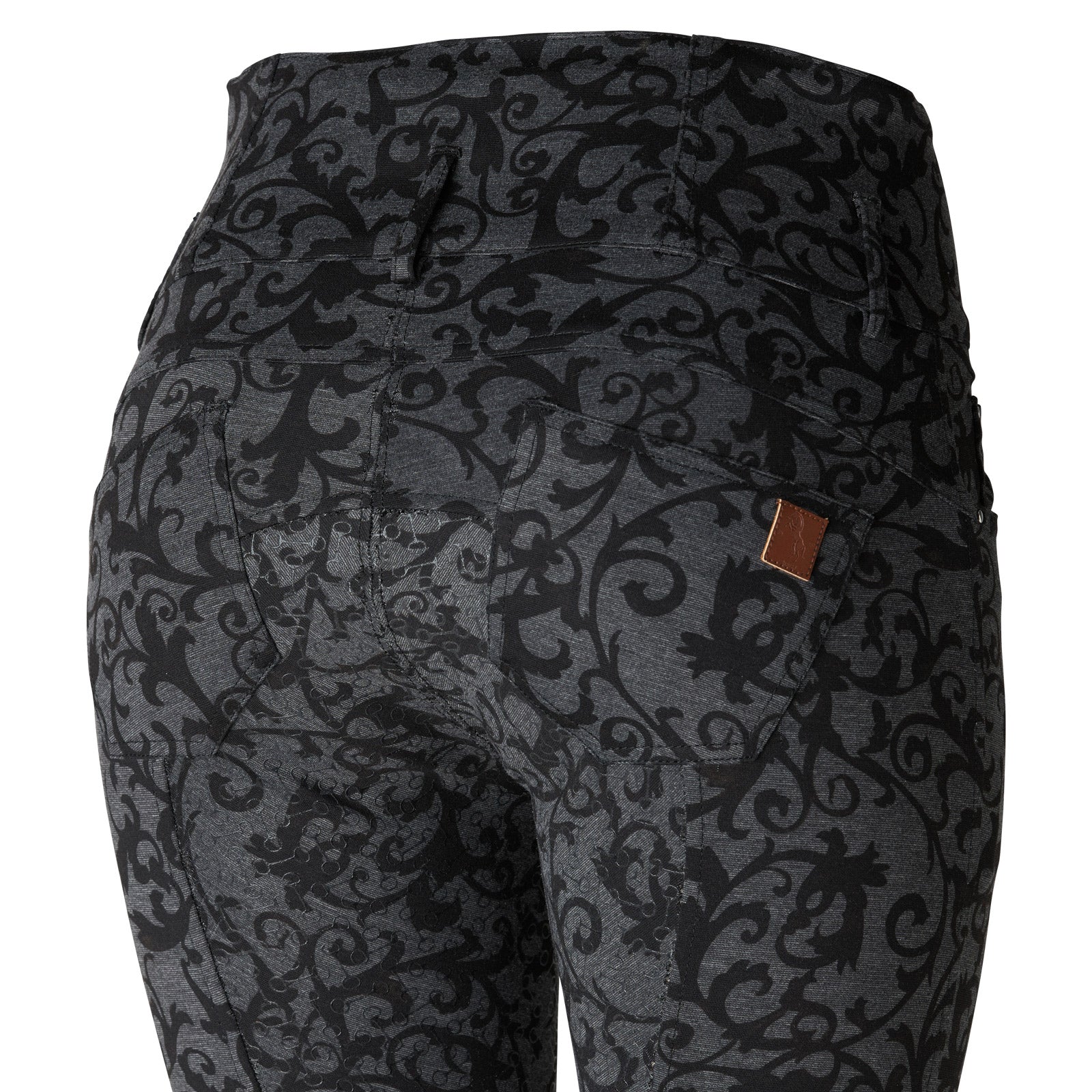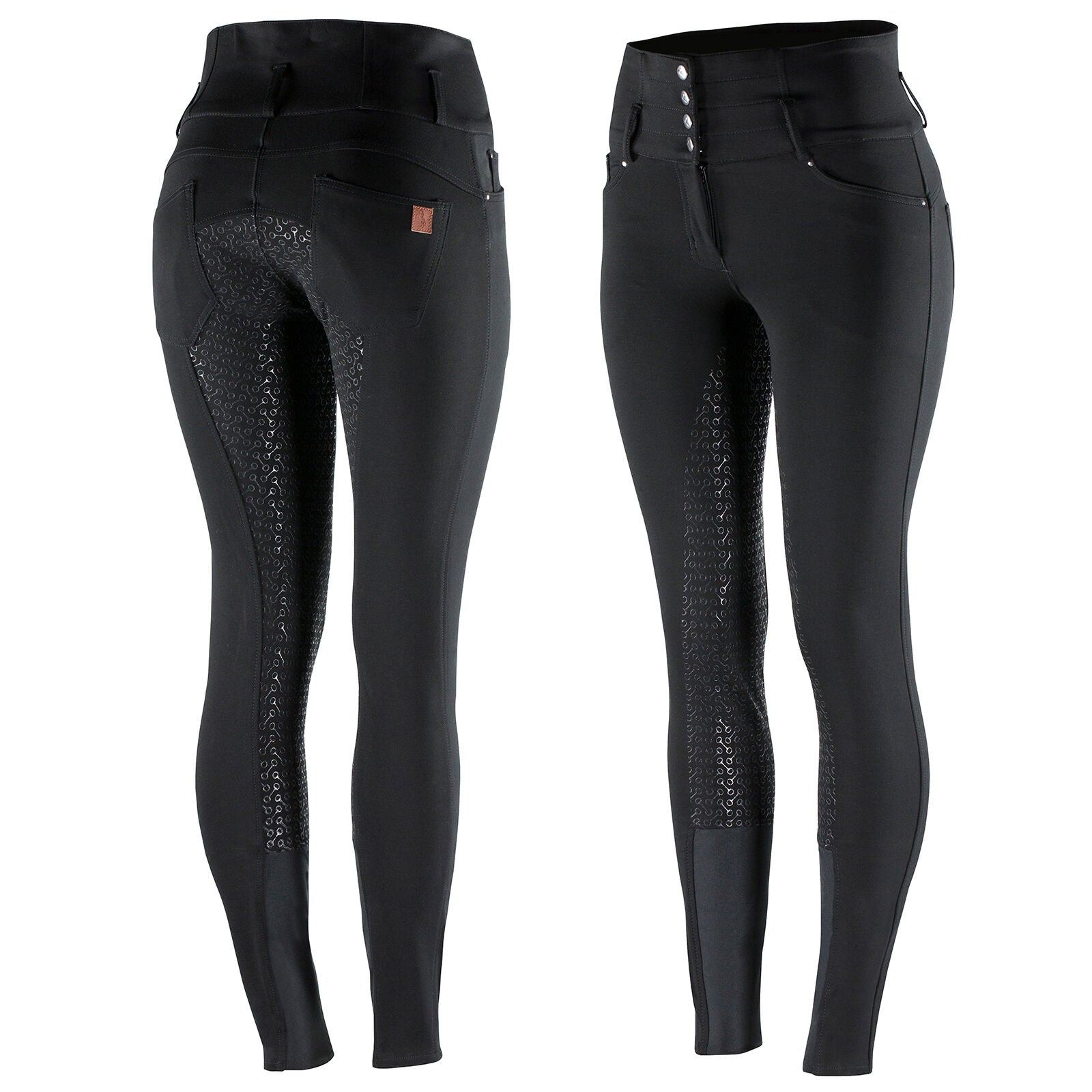 Horze Tara High-Waist Full-Seat Breech is a must-have for your riding wardrobe. With a classic zip and four-button closure, this style is the ultimate choice for combining comfort and a perfect silhouette. The ultra high-waist provides both a snug fit and an extra slimming look, along with extra support. The new fabric mix is soft and comfy, with just enough stretch. The bit print silicone full-seat provides extra grip while the front and back pockets are super convenient.