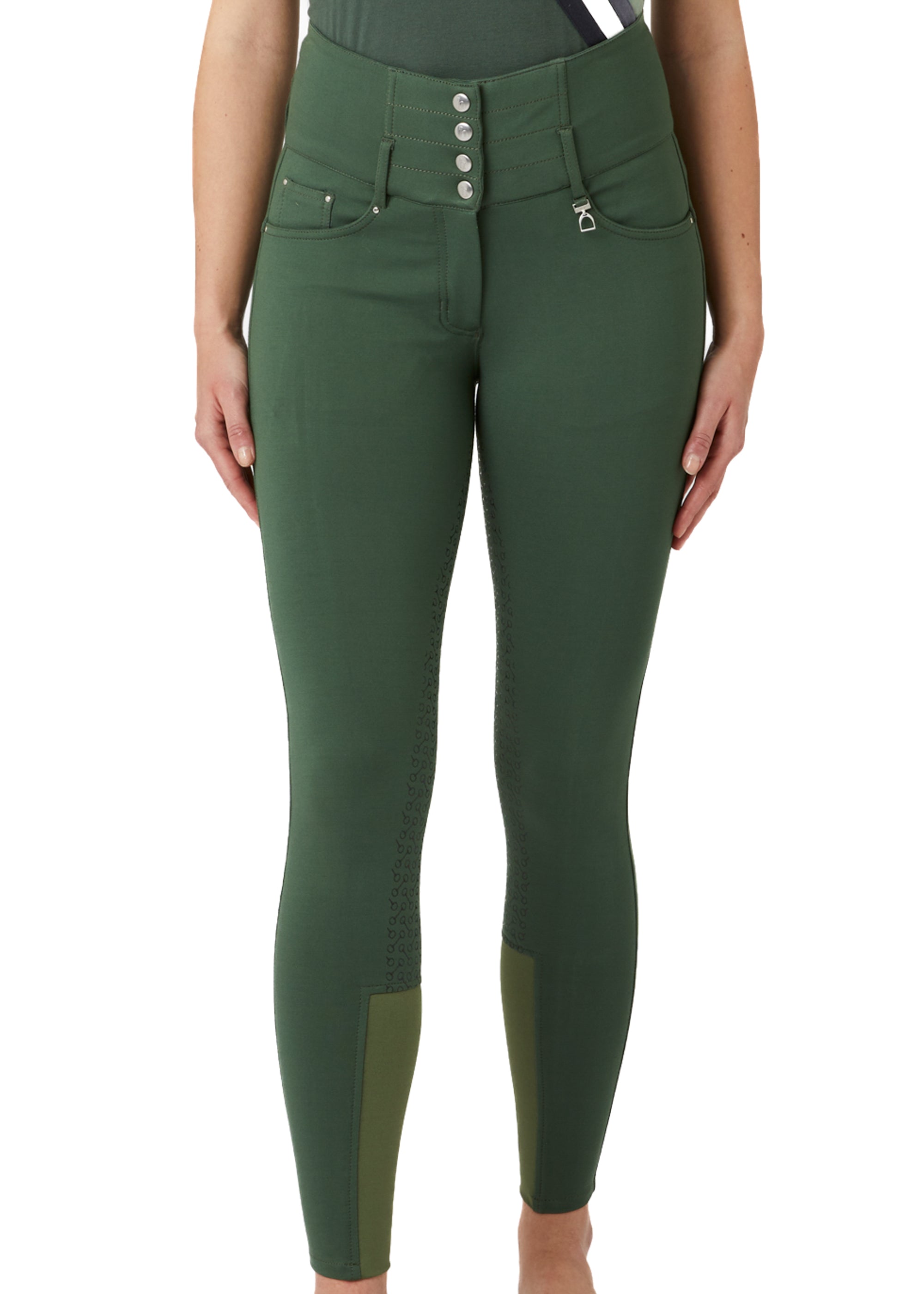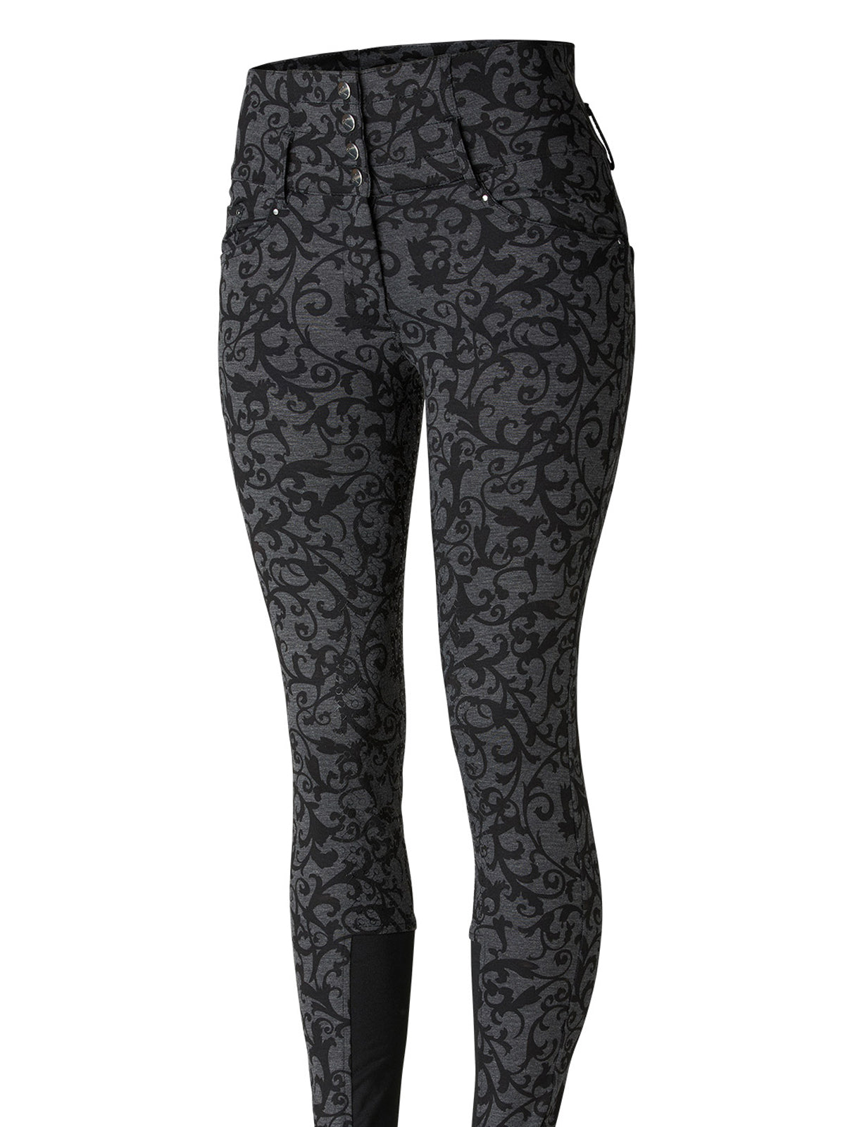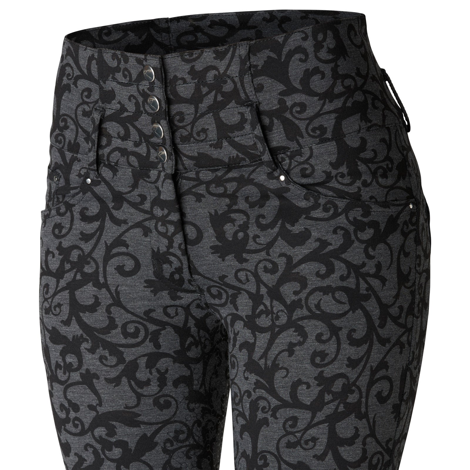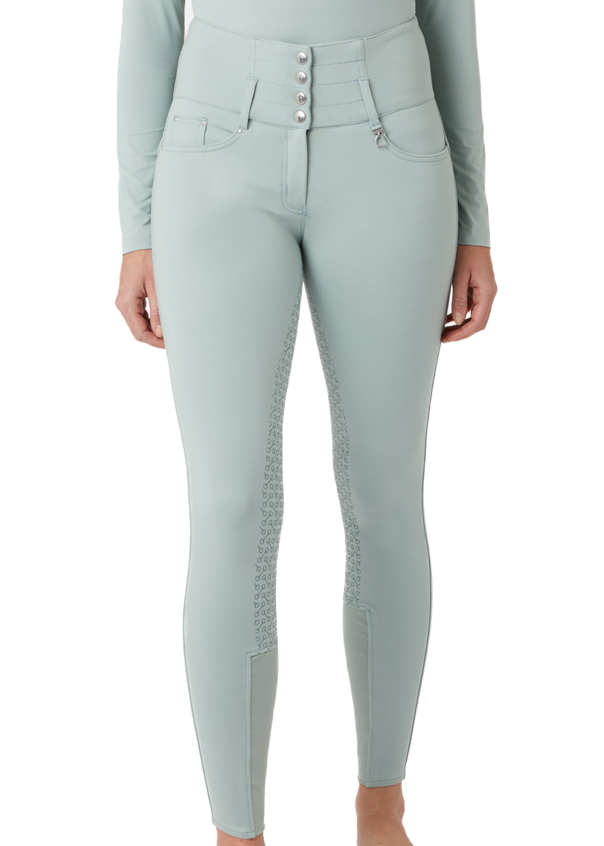 Horze Tara High-Waist Full-Seat Breech is a must-have for your riding wardrobe. With a classic zip and four-button closure, this style is the ultimate choice for combining comfort and a perfect silhouette. The ultra high-waist provides both a snug fit and an extra slimming look, along with extra support. The new fabric mix is soft and comfy, with just enough stretch. The bit print silicone full-seat provides extra grip while the front and back pockets are super convenient.