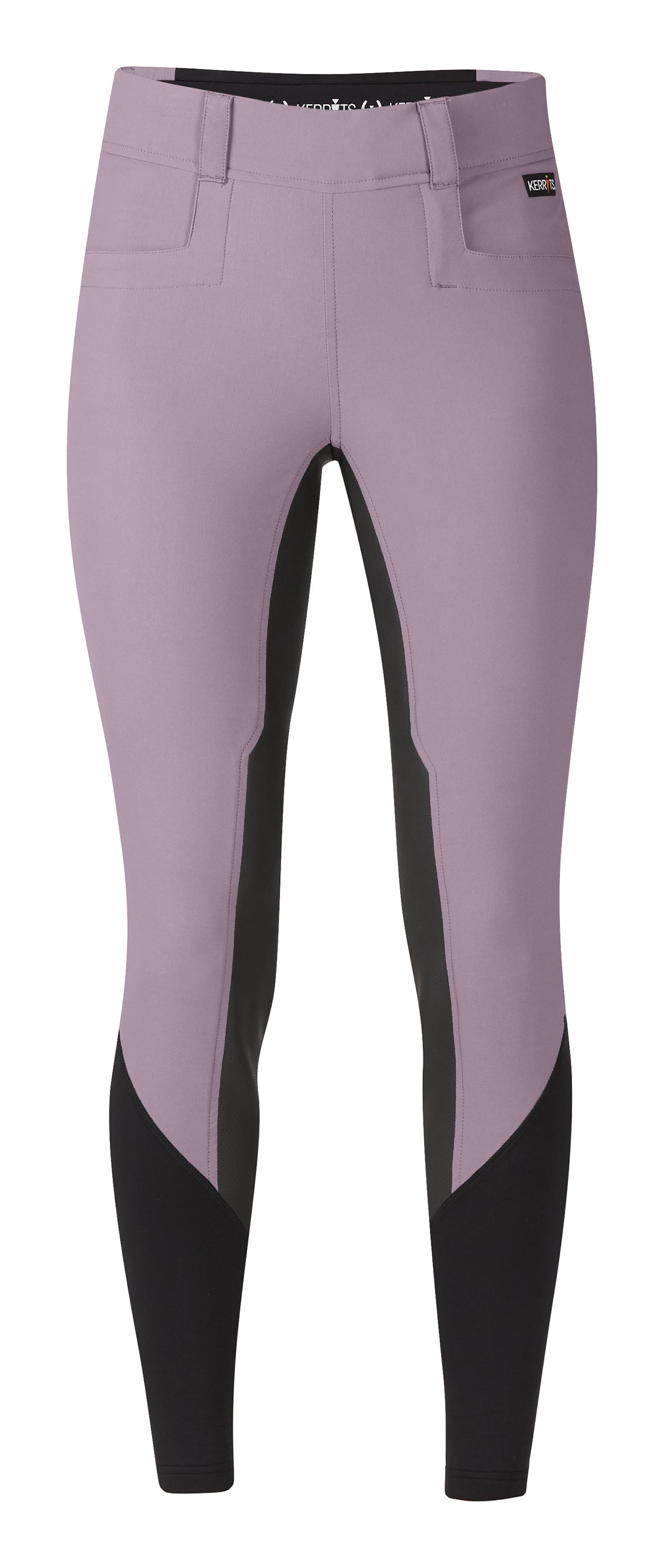 Square front pockets, belt loops, subtle branding and stretch sock bottoms give this breech a polished look. Kerrits’ popular Flow Rise waist sits low in front and slightly higher in the back for modest coverage.