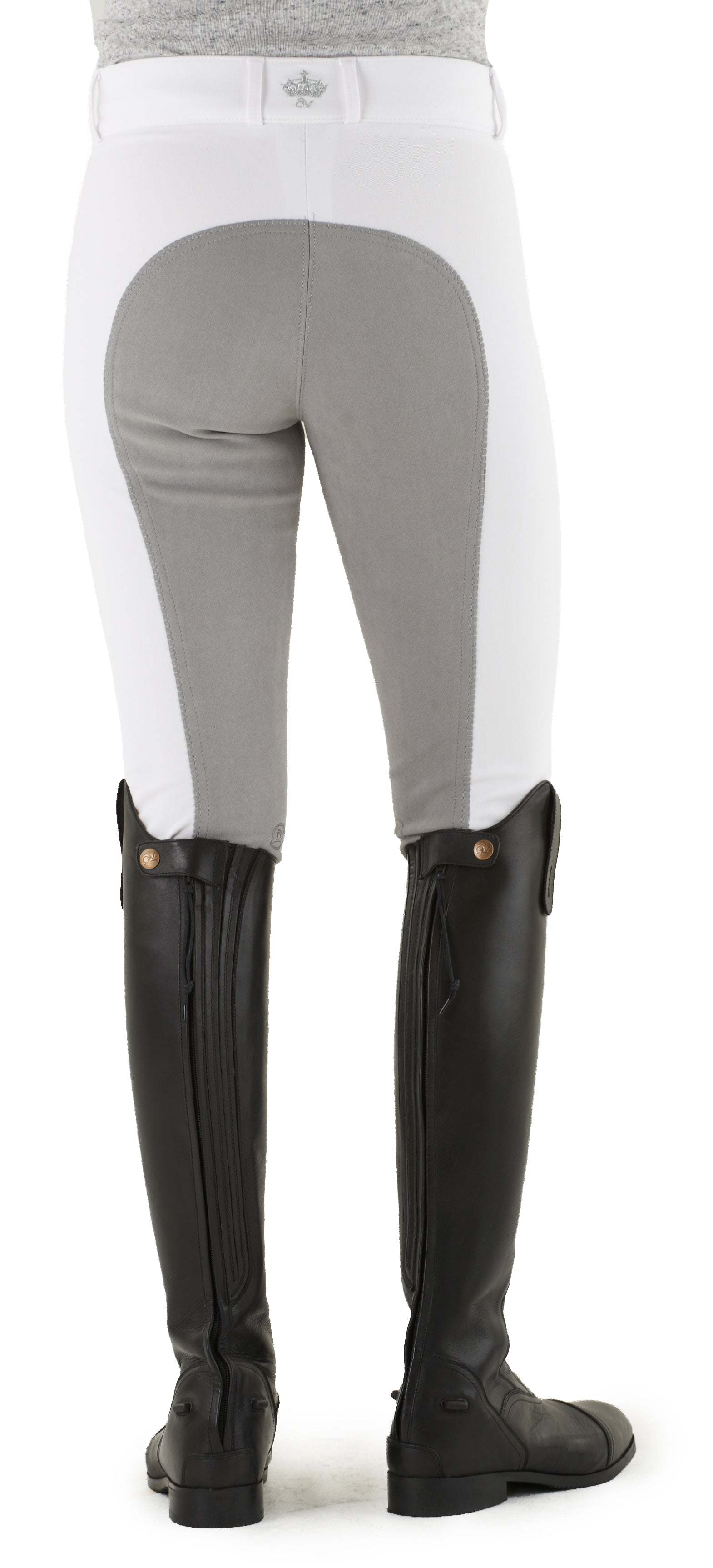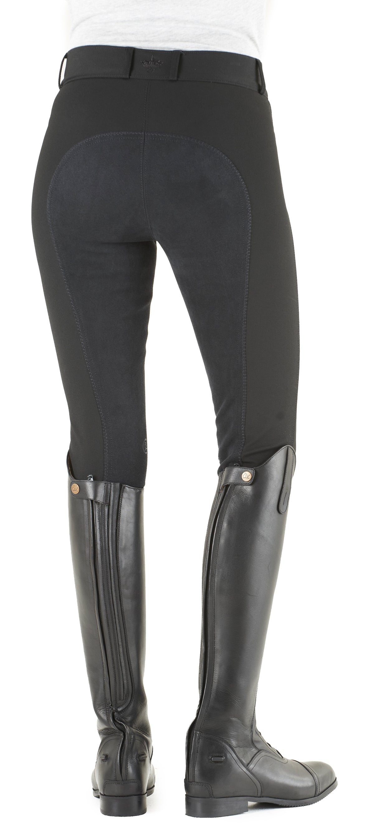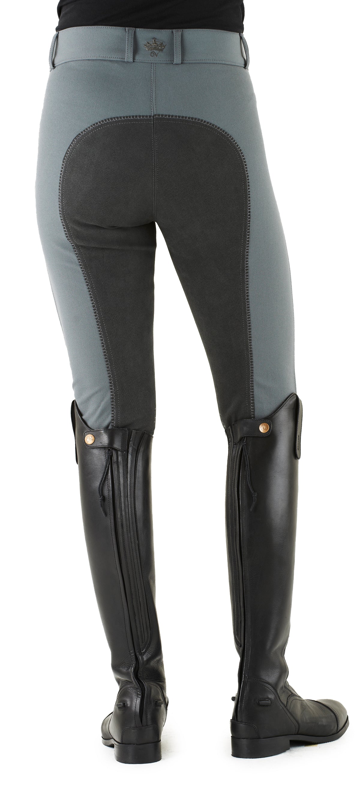 This breech features a mid rise, front zipper with a double-slide clasp closure for a clean look, fancy double pocket detail, Syn-Tec™ Stretch Suede™ full seat and Dry-Tex™ Tube Bottoms™ for a comfortable fit under your tall boots. The non-pinching waistband gently hugs you in all the right places. A Dry-Tex® inner skin keeps you cool and dry.