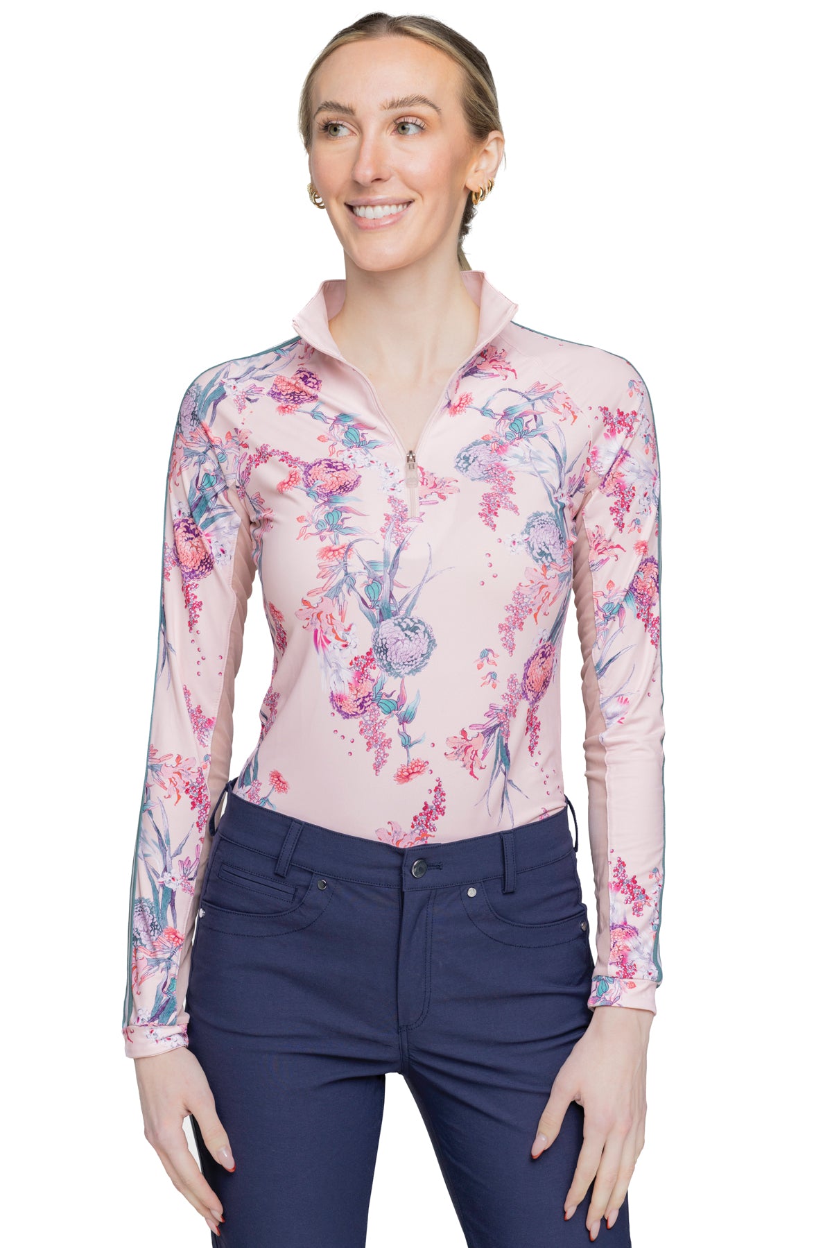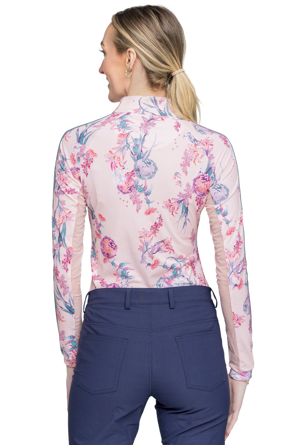 Beautiful shades of pink, blush, fuchsia and soft jade make this Kastel Denmark Ladies’ Clarissa Long Sleeve tea garden floral shirt a stunner. Slightly shirred for style, quarter zip and a contemporary fit.