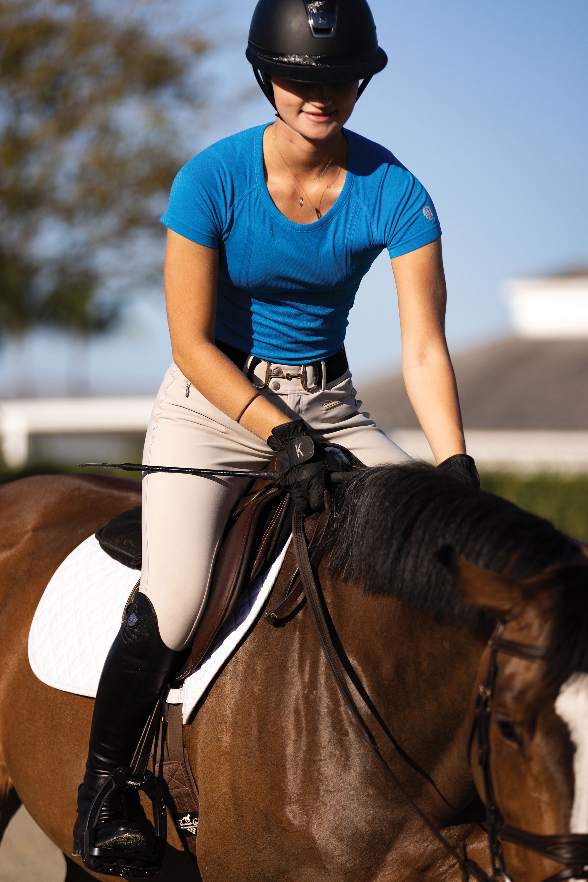 Full coverage, four-way stretch and moisture wicking make the TKEQ Kennedy Seamless Short Sleeve Top an equestrian essential. In a comfortable, flattering, seamless body design, this ultimate training shirt also provides breathability and helps block UV rays.