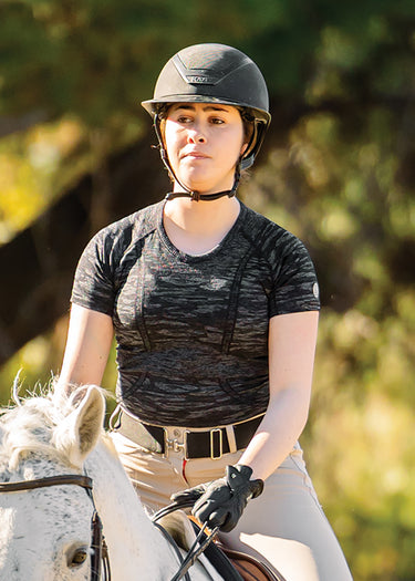 The TKEQ Kennedy Seamless Short Sleeve Top offers the comfort and performance that makes it a must-have for riders. Ultrasoft fabric rated UPF 30+ offers moisture wicking, breathability and four-way stretch. The contouring knit sits closely against your body; smooth knit fabric finishes the neckline and short sleeves.