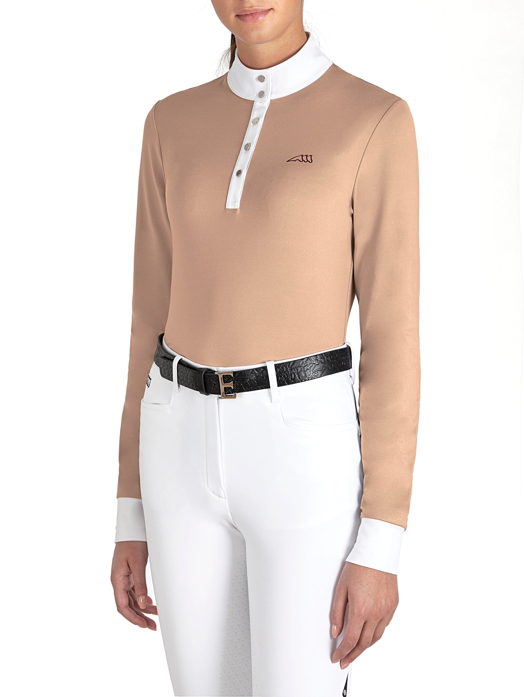 The luxurious comfort of the Equiline Emark Competition Polo Shirt helps you make your mark on show day. Highly breathable, quick-drying fabric is fashioned into this flattering design. Long sleeves help protect your skin from sun.