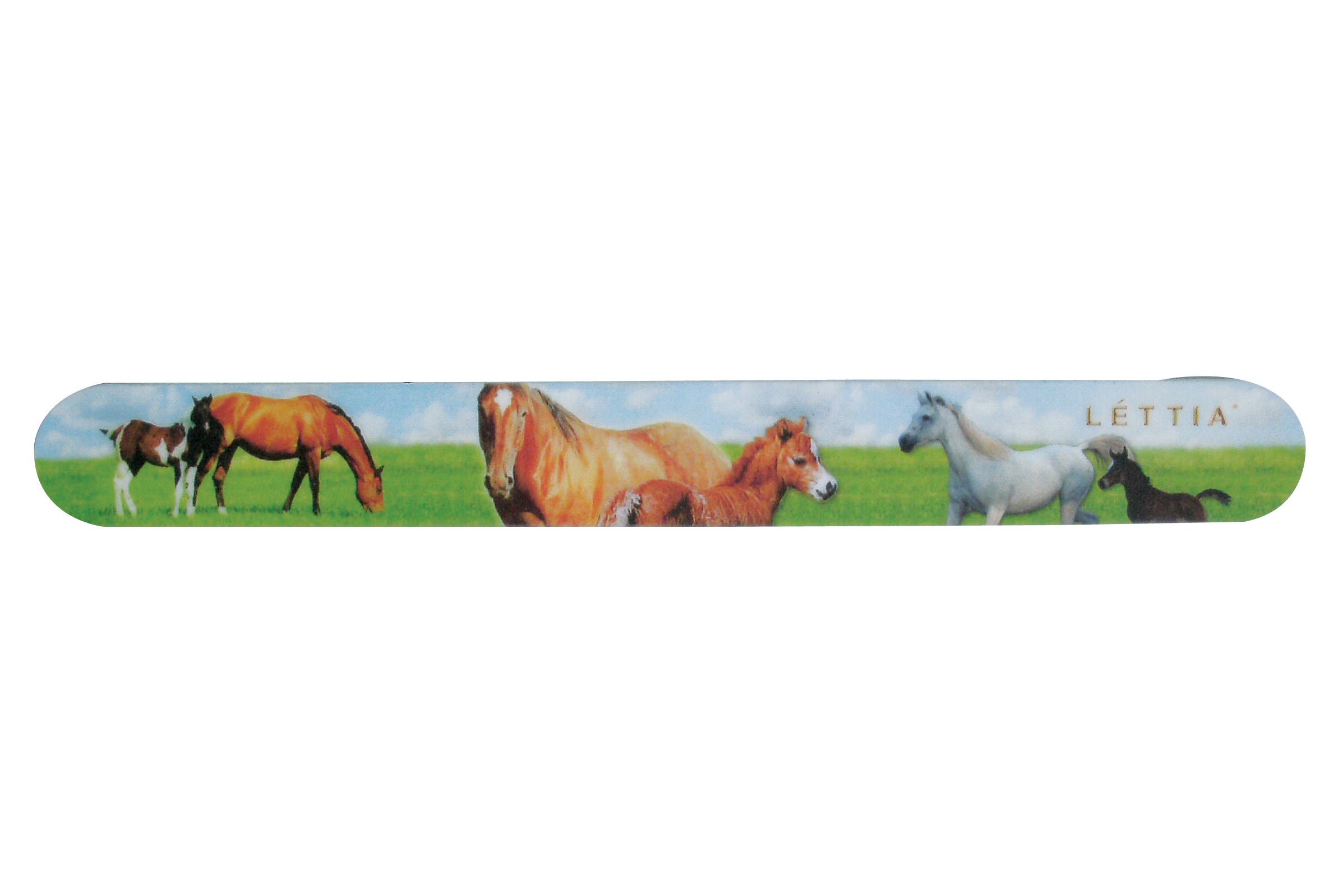 This high-quality, two-sided Emery Board features graphics any horse lover will appreciate. This nail file offers two levels of abrasion to smoothly finish nails. 7" long.