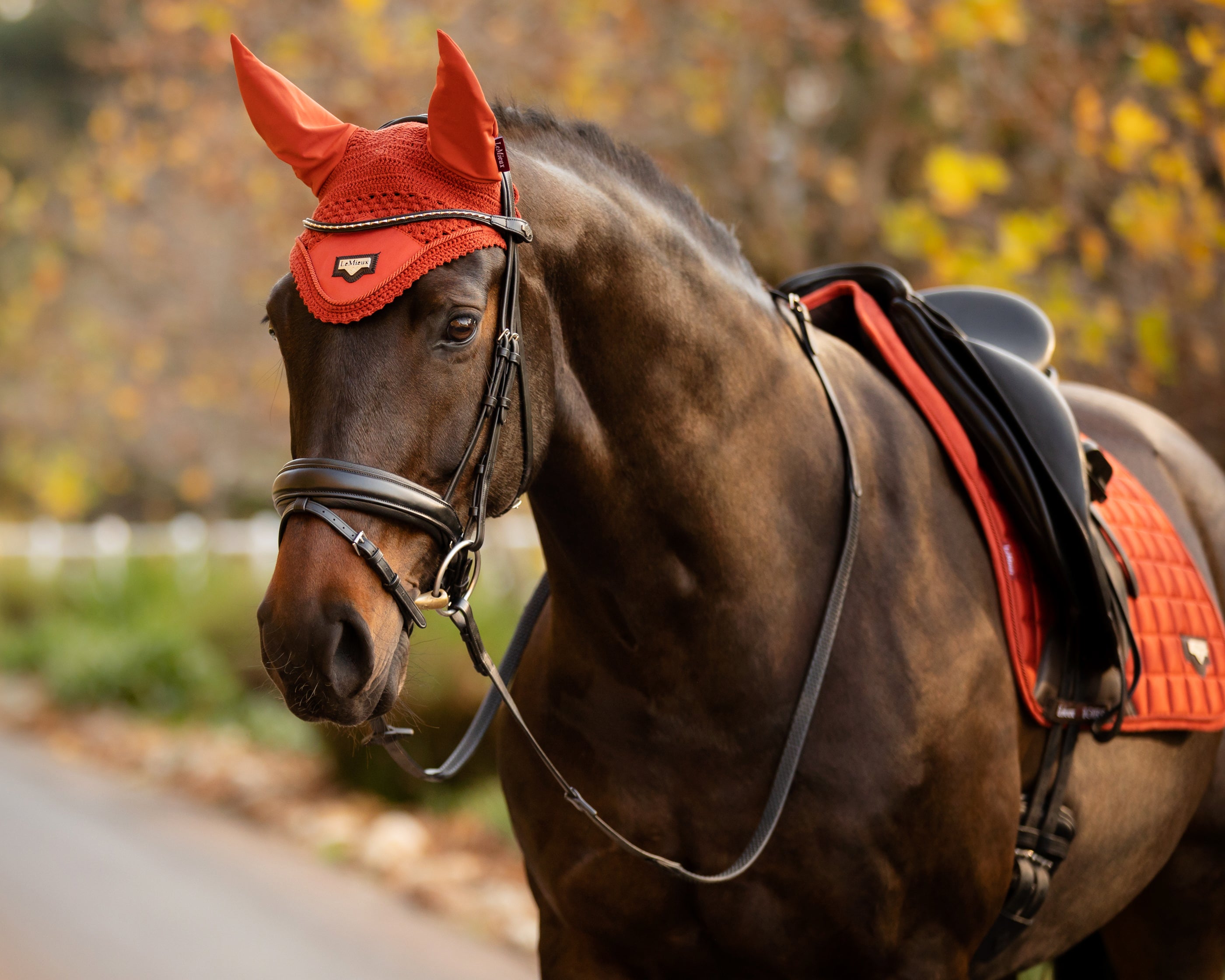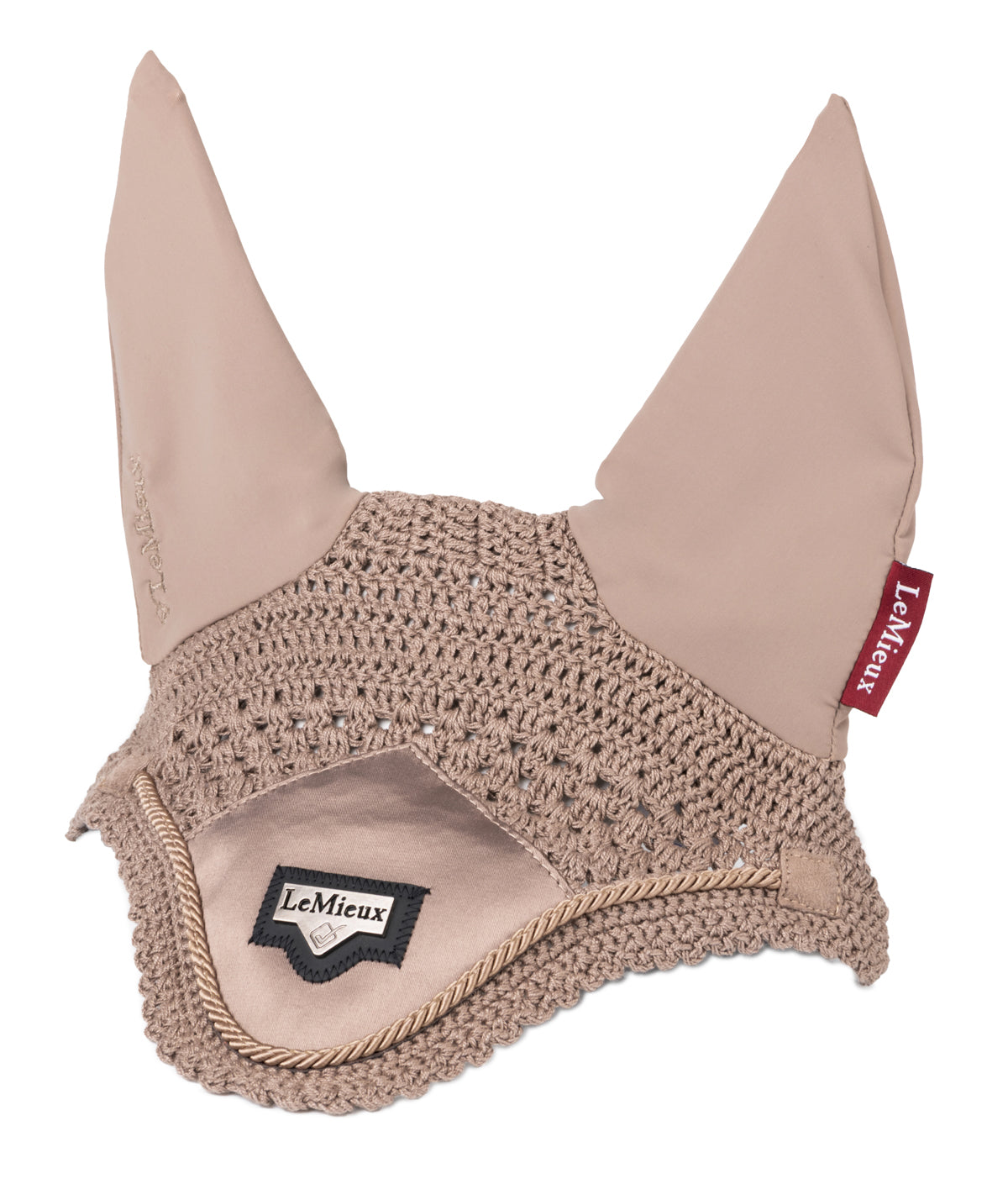 From the luxurious LeMieux® Loire Collection, the Loire Satin Fly Hood combines style and functionality. It is beautifully crafted with a body of breathable, three-way, close-knit crochet and trimmed with satin fabric, tonal cording and a signature metal brand plaque. Soft, stretchy Lycra® fabric ear covers let your horse move its ears naturally while keeping insects out.