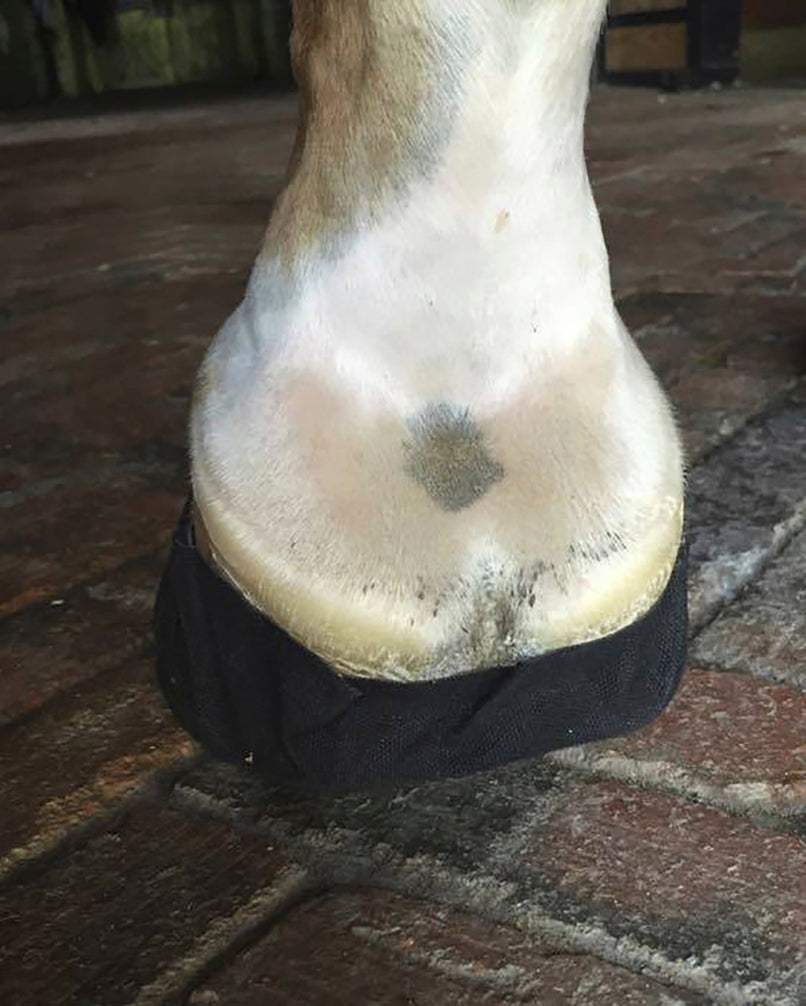 The hoof can be packed and/or medicated as normal. Apply to clean, dry hooves. Not intended for use in turnout. Intended for one single use per pair.