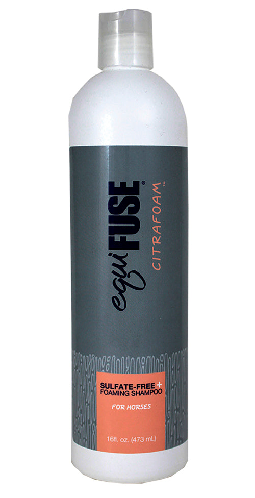 CitraFoam™ is an eco-friendly, plant-based shampoo that promotes hair health and is ideal for sensitive skin types. This mostly natural shampoo works at the skin level to combat dryness, dander and dandruff. Refreshing and mild, it is highly recommended to be used on manes and tails to promote hair growth and strength.