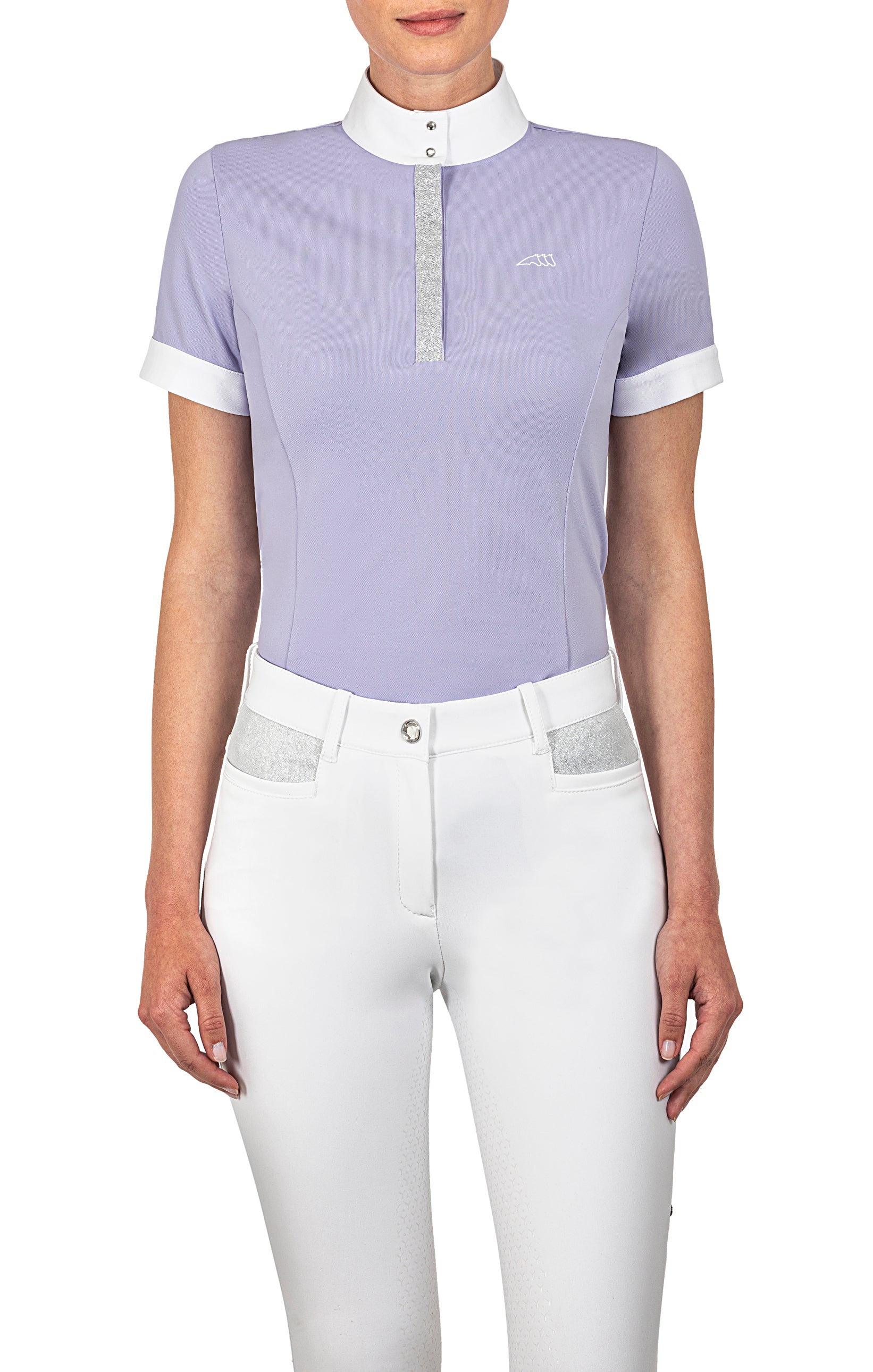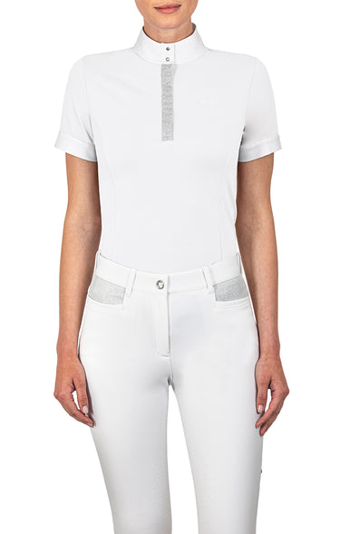Soft, breathable and pretty, the Equiline Ladies’ Gardug Competition Shirt offers a feminine fit in lightweight stretch fabric. Princess seaming lets it contour to your form for a smooth look under your show coat. The poplin collar secures with crystal jewel buttons, and the covered button placket is topped with a Lurex® and tulle detail.