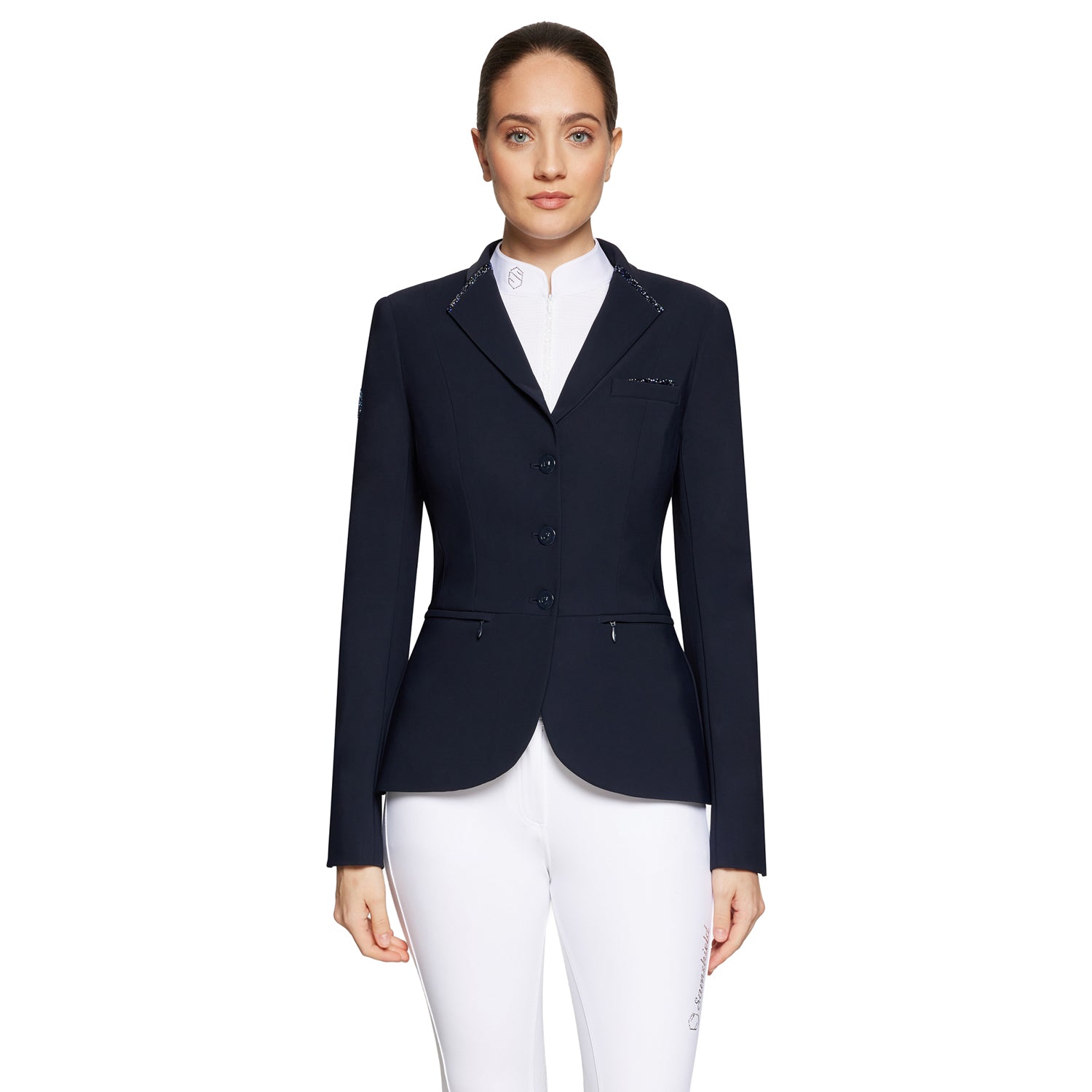 The Samshield® Victorine Premium Show Coat is designed for riders looking for sparkling style for shows and competitions. An elegant, short style design with three buttons and a hidden zip closure. Premium finishes with crystal blazon on the shoulder, ultra fine rock crystal decorations on the lapel, collar, chest pocket and back pleat. Breathable and stretchy fabric is designed in an eco-responsible way to last over time with anti-pilling, wrinkle-resistant finish. UPF 50 sun protection. Compatible with zip'in Airbags.