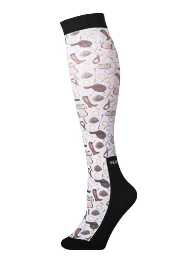 Dreamers & Schemers A Pair & A Spare Socks stand up to day after day of riding. Comfortable and long-lasting, this riding sock boasts a flat-seam toe and terry foot bottom. The terry foot continues up the back of the heel to give you a layer of protection from boot creases and rubs. The slender shaft lets the sock fit smoothly into your riding boot.