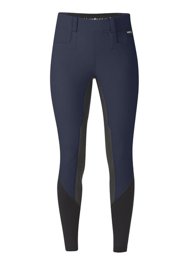 Square front pockets, belt loops, subtle branding and stretch sock bottoms give this breech a polished look. Kerrits’ popular Flow Rise waist sits low in front and slightly higher in the back for modest coverage.