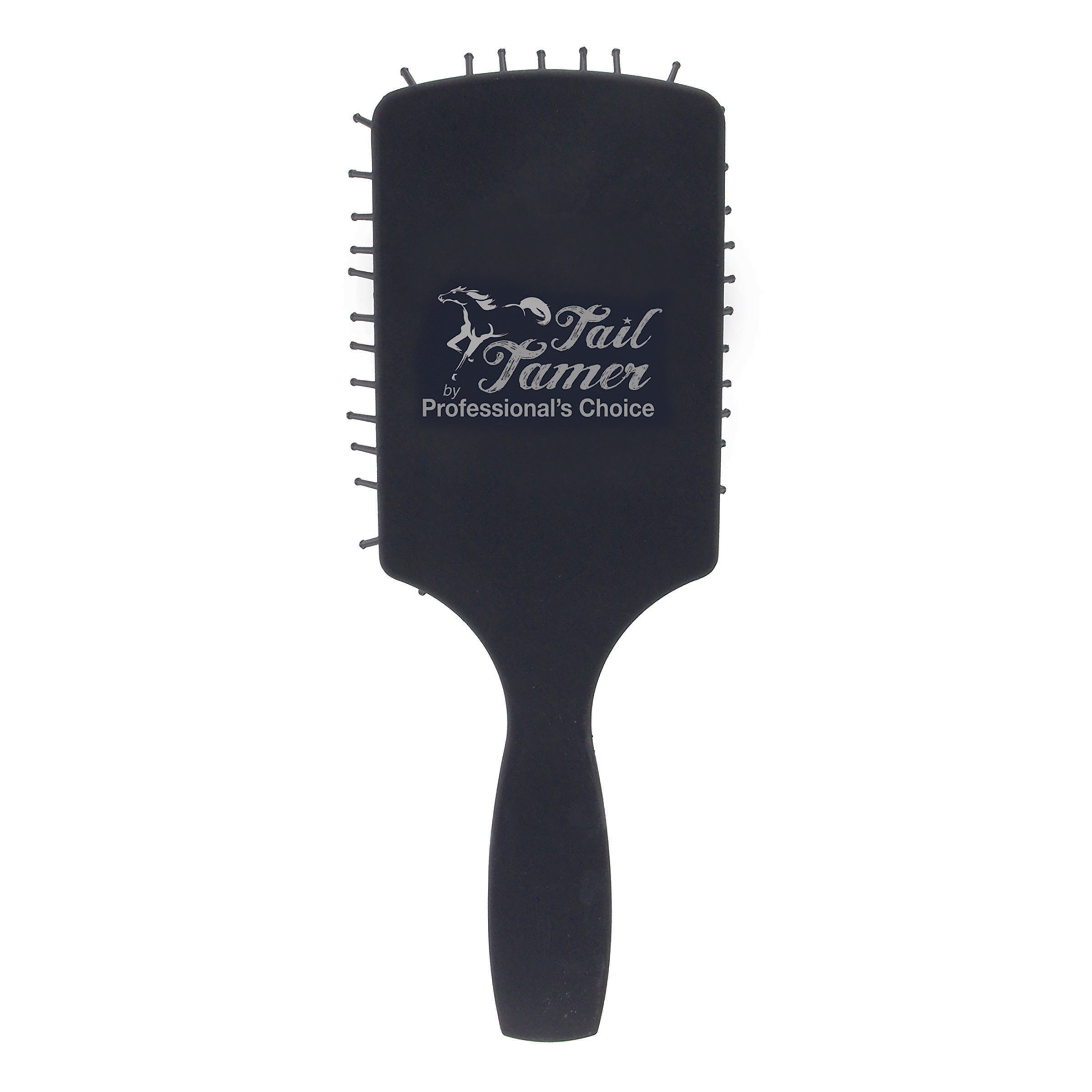 The Tail Tamer® Paddle Brush is a durable mane and tail brush with flexible bristles to protect against breakage. Textured handle for sure grip.