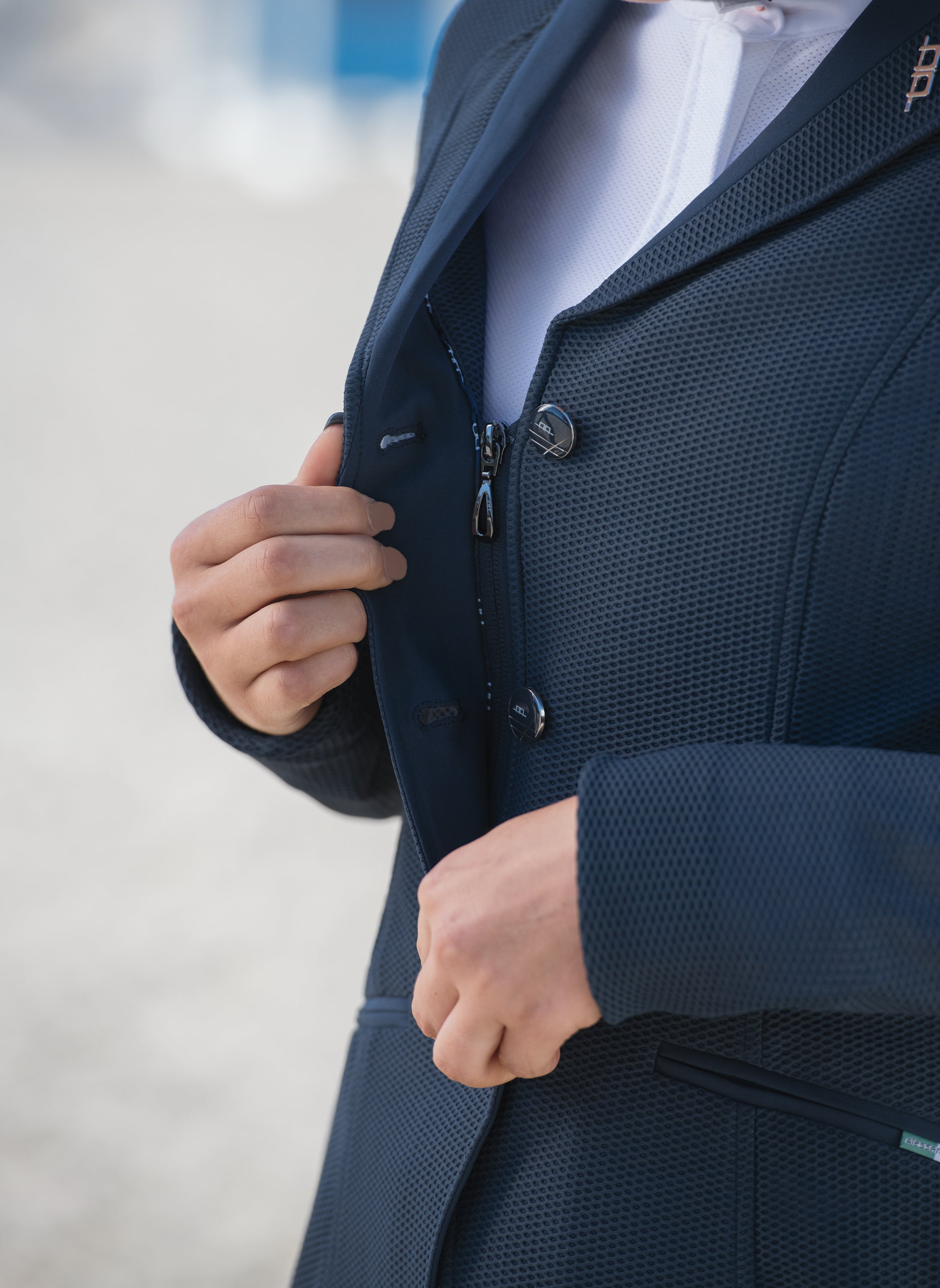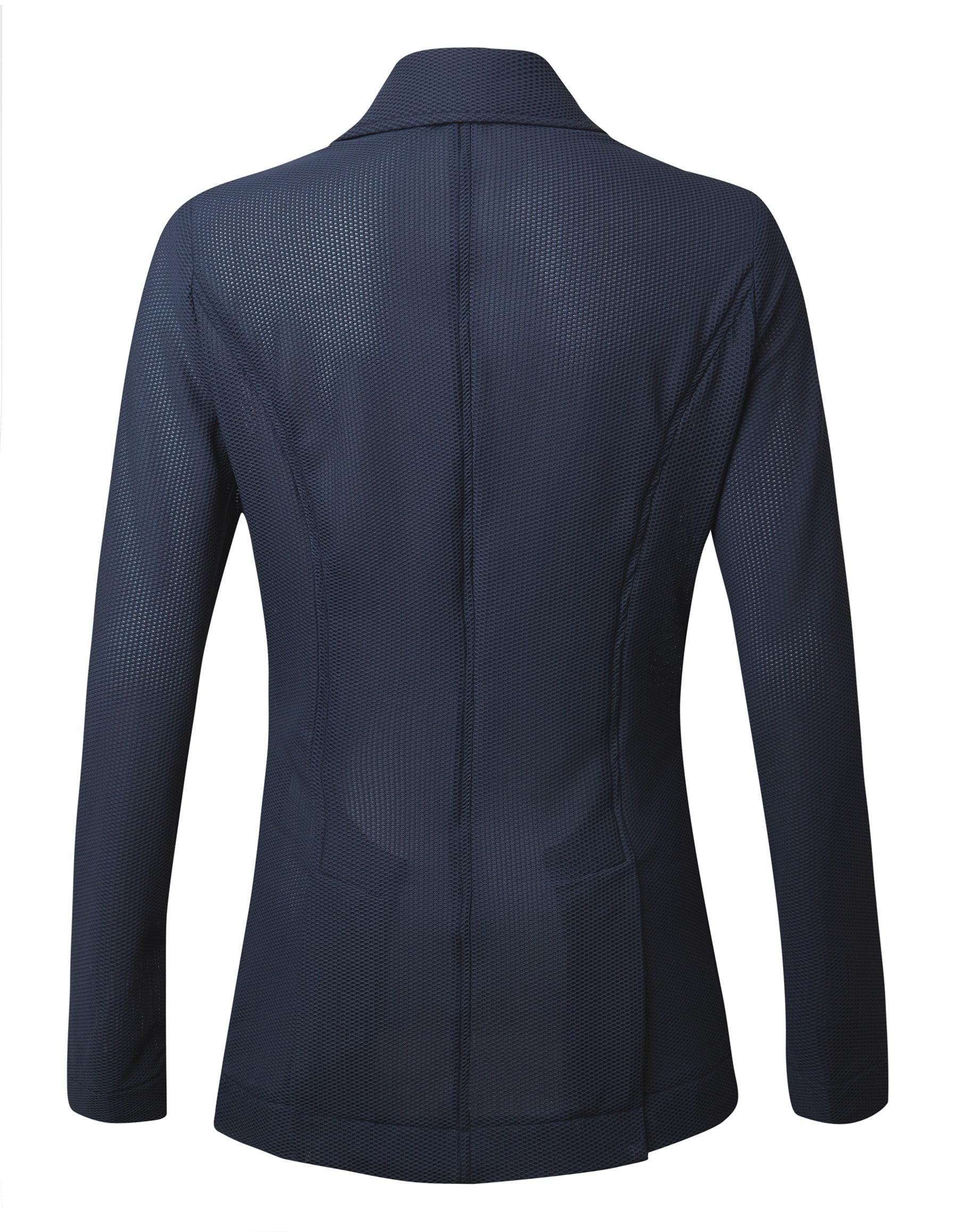 The award-winning AA Platinum Ladies’ MotionLite Competition Jacket is unrivaled in breathability and stretch. A must for warm competition days, it’s made from super-lightweight but opaque mesh fabric that dries quickly. Classic Italian tailoring creates a second skin fit. This versatile show coat is left unlined for a light feel and features a hidden front zipper, two front welt pockets, a double-vented back, an internal key or pass pocket, and subtle AA detailing throughout. Interchangeable buttons ensure multi-discipline use—including equitation. This jacket won the Innovation Award at British Equestrian Trade Association (BETA) 2016 Event.