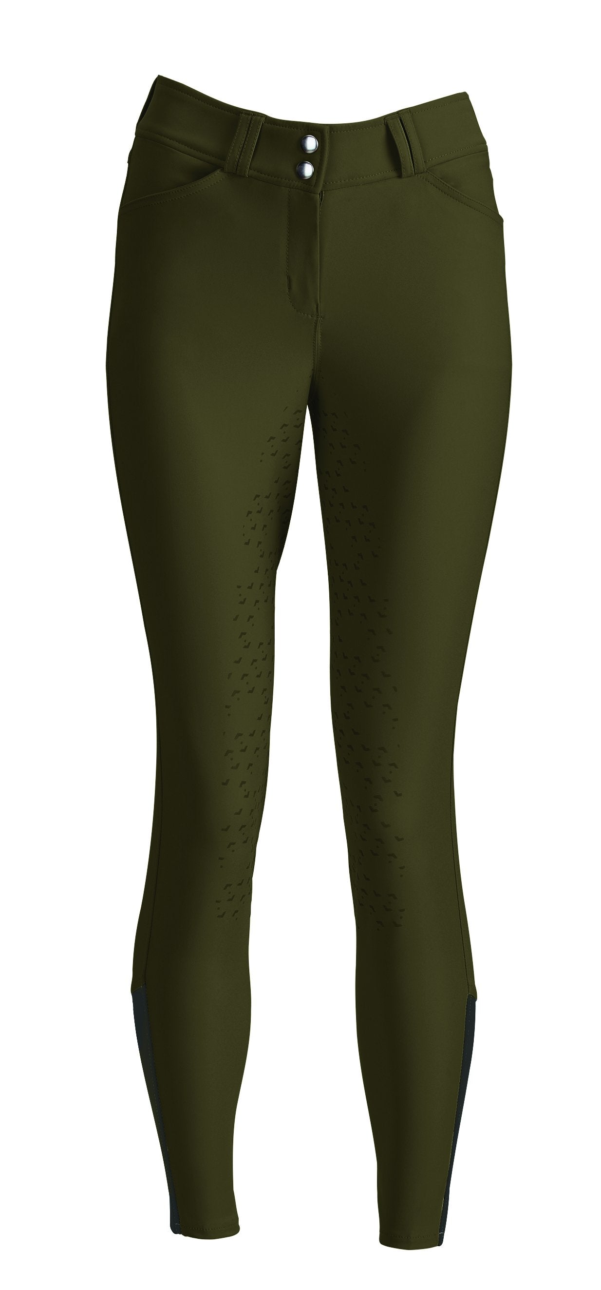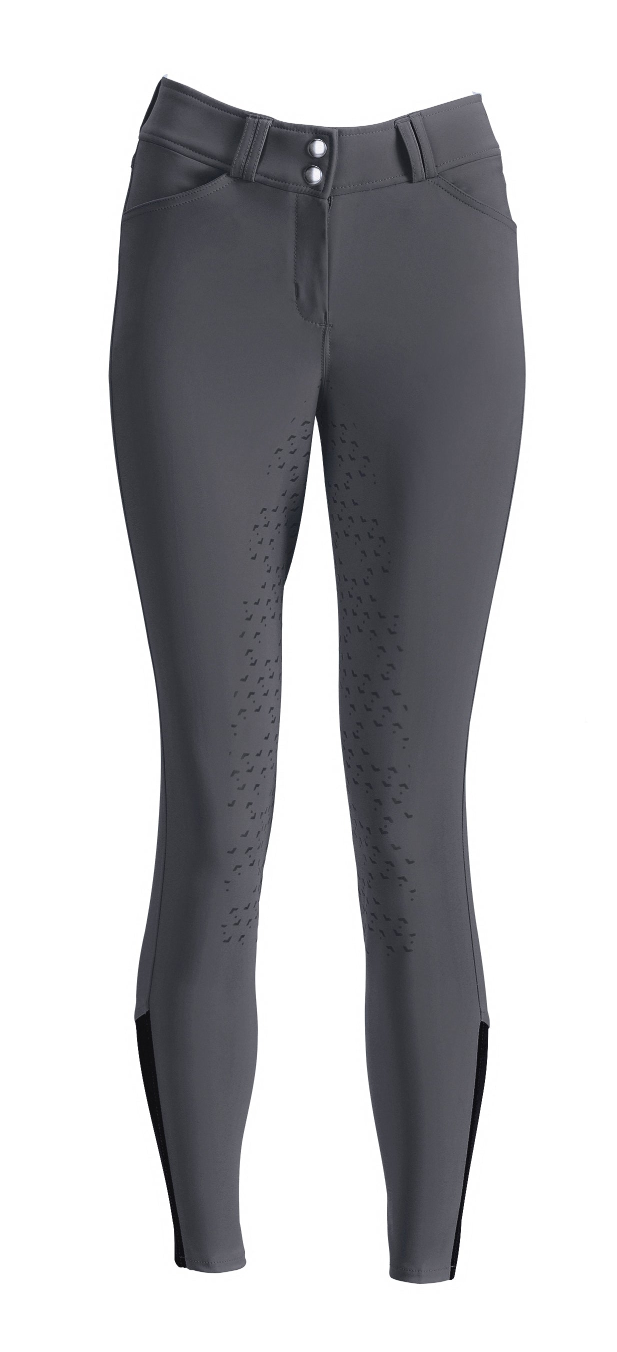 This breech maintains flattering, stay-put comfort and coverage with themid-rise EquiTrue Rise™. The unique design moves with you, keeping true to your form as you ride or bend to groom. No matter how you move in the saddle or out, the soft, covered waistband and seat stay put without pinching, binding or slipping. You can concentrate on your horse—not your breech! The EquiTrue Rise sits just below the belly button on most riders.