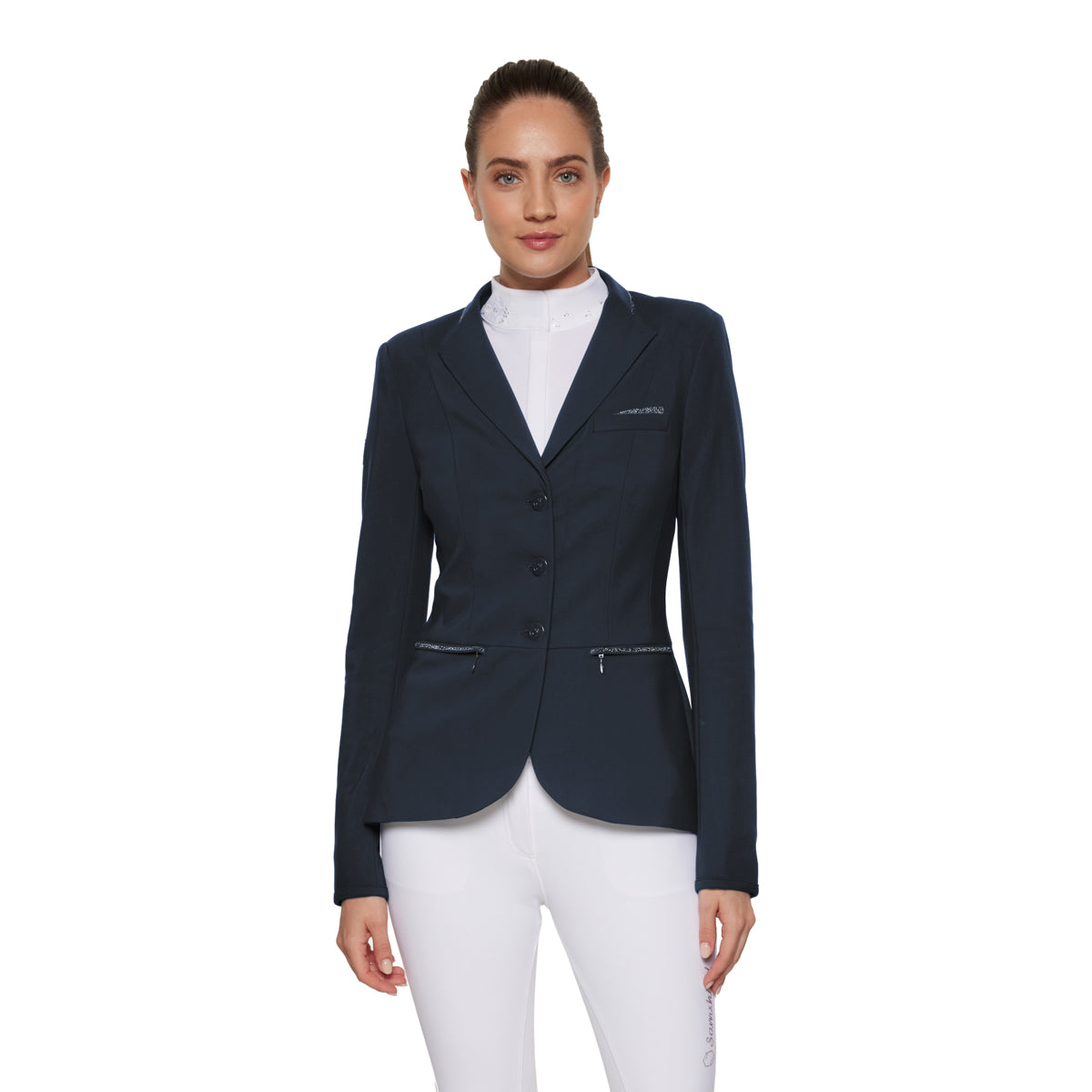 The Samshield® Ladies’ Victorine Crystal Show Coat offers a performance based design. Crafted from breathable, stretch fabric, this jacket provides exceptional freedom of movement and comfort. Samshield blazon with crystal details, UPF 50+ sun protection, wrinkle-resistant finish, and machine washable. Front zip with tonal buttons. Mesh lined for added breathability.