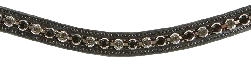The beautiful browband has alternating dark grey and black crystals. Styled with chrome hardware. Web reins included.