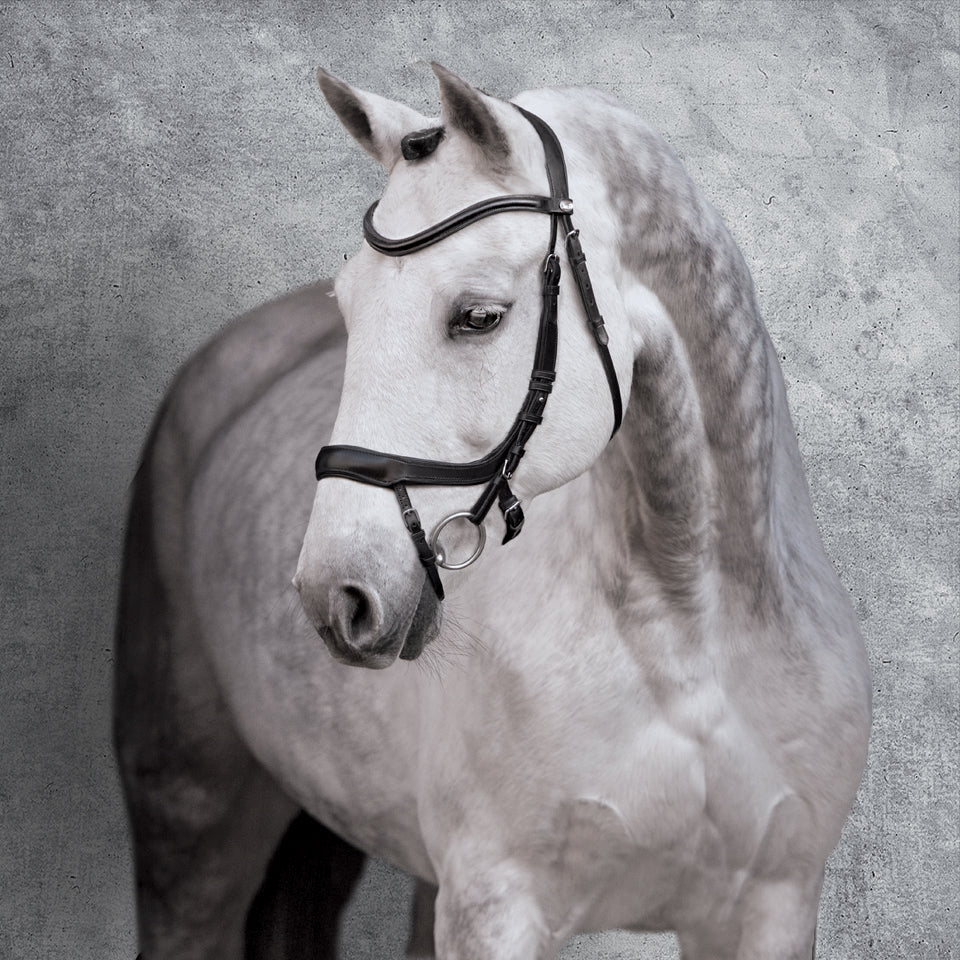 Approved for use in competition by the USDF and in international competitions by the FEI. The Schockemöhle Equitus Alpha Bridle is engineered in Germany with an anatomical design to provide your horse with the ultimate comfort. The concept behind this ergonomically shaped dressage bridle focuses on eliminating pressure and discomfort at the most sensitive areas and main blood vessels of your horse’s head.