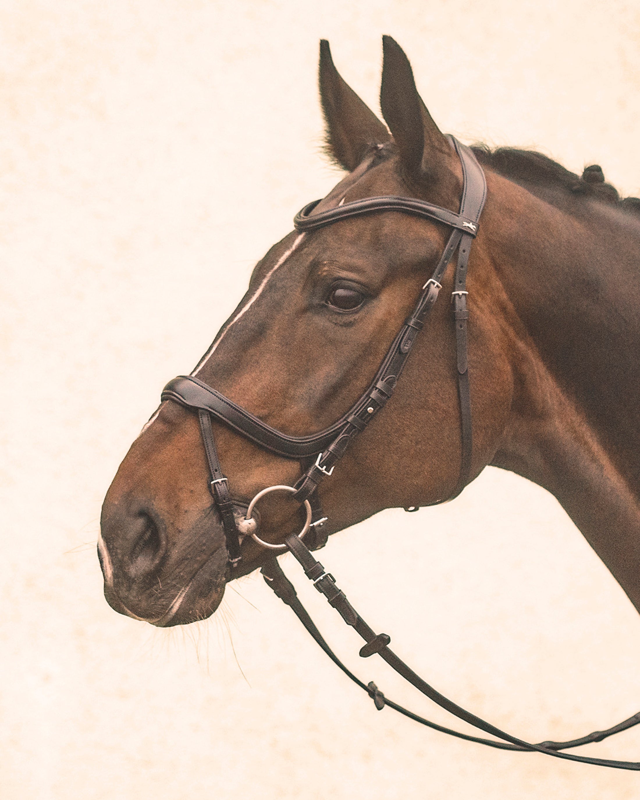 - Softly padded, contoured single crownpiece that avoids pressure at the backs of the horse’s ears.