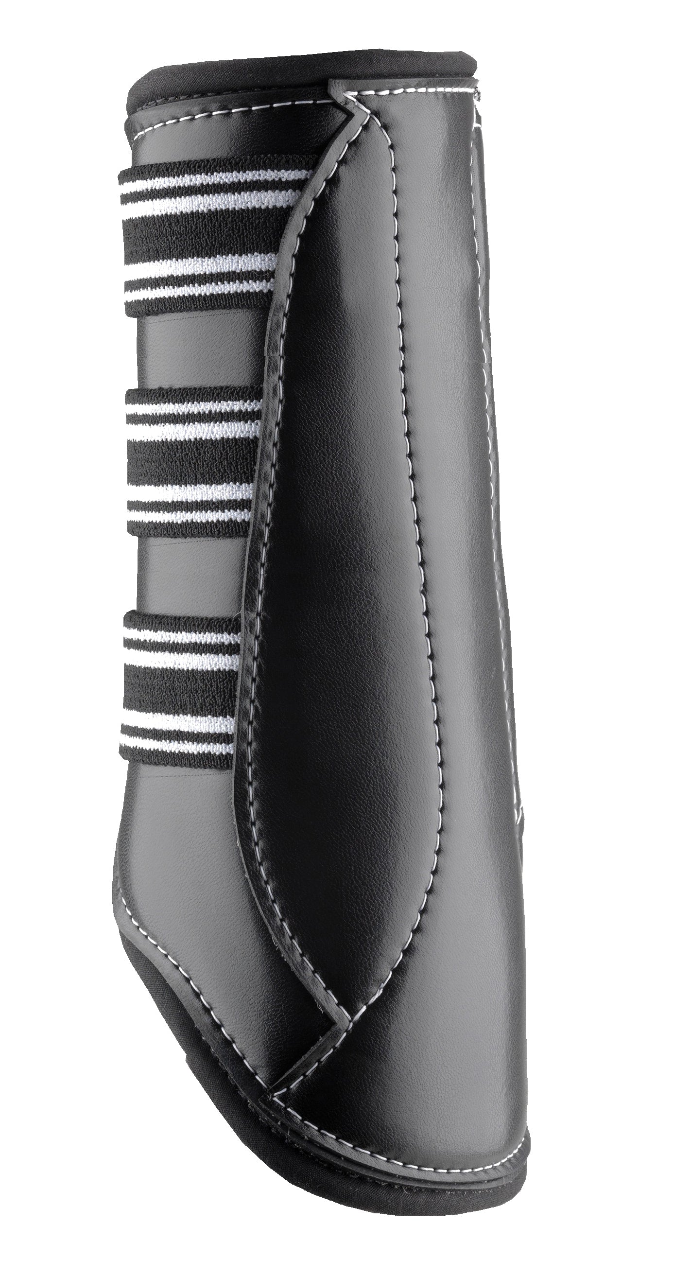 On impact, ImpaqTec transforms from soft to rigid to protect the horse’s leg from concussion. The anatomically shaped outer shell of this tall hind boot stays looking new forever thanks to its scratch-, tear- and puncture-resistant EverLeather™ cover. Pressure points are dispersed with three straps and double-reinforced closures. Pair.