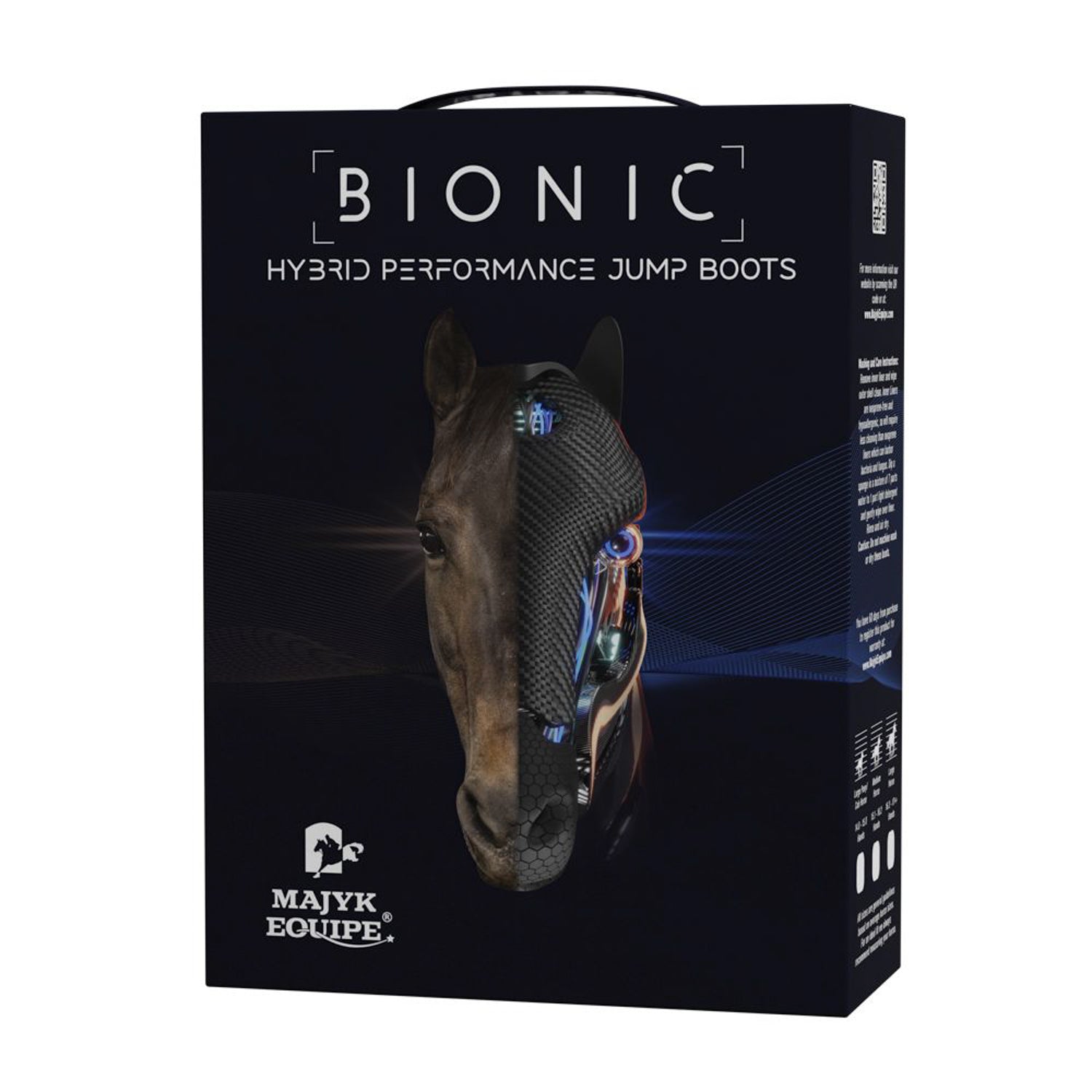 The Majyk Equipe® Bionic Hybrid Performance Jump Hind Boot marries a traditional looking outer and 21st century technology. Bionic Hybrid hind boots have a leather-look with high-tech carbon-infused guards and Arti-Lage™ Impact Technology impact response technology.