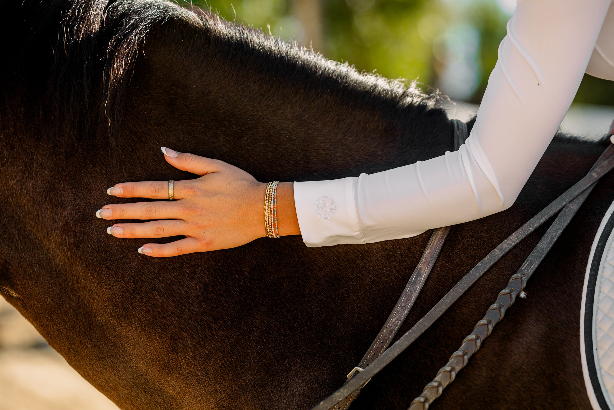 The ring-ready TKEQ Skylar Long Sleeve Competition Shirt is made to flatter and includes all the athletic features avid riders require. Breathable, moisture-wicking fabric helps keep you cool and focused on your rides. Four-way stretch supports your mobility, and UV protection makes it friendly to your skin.