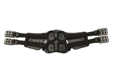 - Uniform pressure distribution is achieved with the girth’s ergonomic and fan-shaped design. It wraps around the horse’s chest from below and slightly to the sides, offering freedom of movement while significantly reducing girthiness.