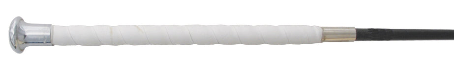 This Premium Fleck Whip offers professional quality with perfect balance and stiffness that is suitable for schooling or show. Handcrafted in Germany, Fleck whips combine state-of-the-art technology with contemporary design and have been made for over 100 years. The whip shaft consists of durable, lightweight fiberglass that is wrapped in a sleek, lacquered linen-thread cover. The rippled leather-wrapped handle is soft and comfortable and provides optimum grip. Topped off with a silver nickel mushroom cap, the handle design helps prevent the whip from slipping out of your hands while riding. The high-quality lash is styled to resist fraying. Length of the whip includes lash.