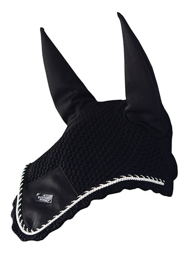 The Equestrian Stockholm Classic Ear Bonnet is a luxurious design offering protection against insects. Breathable crocheted body and stretchy cloth ear covers for minimal friction. Accented with double-row cording and a logo badge.