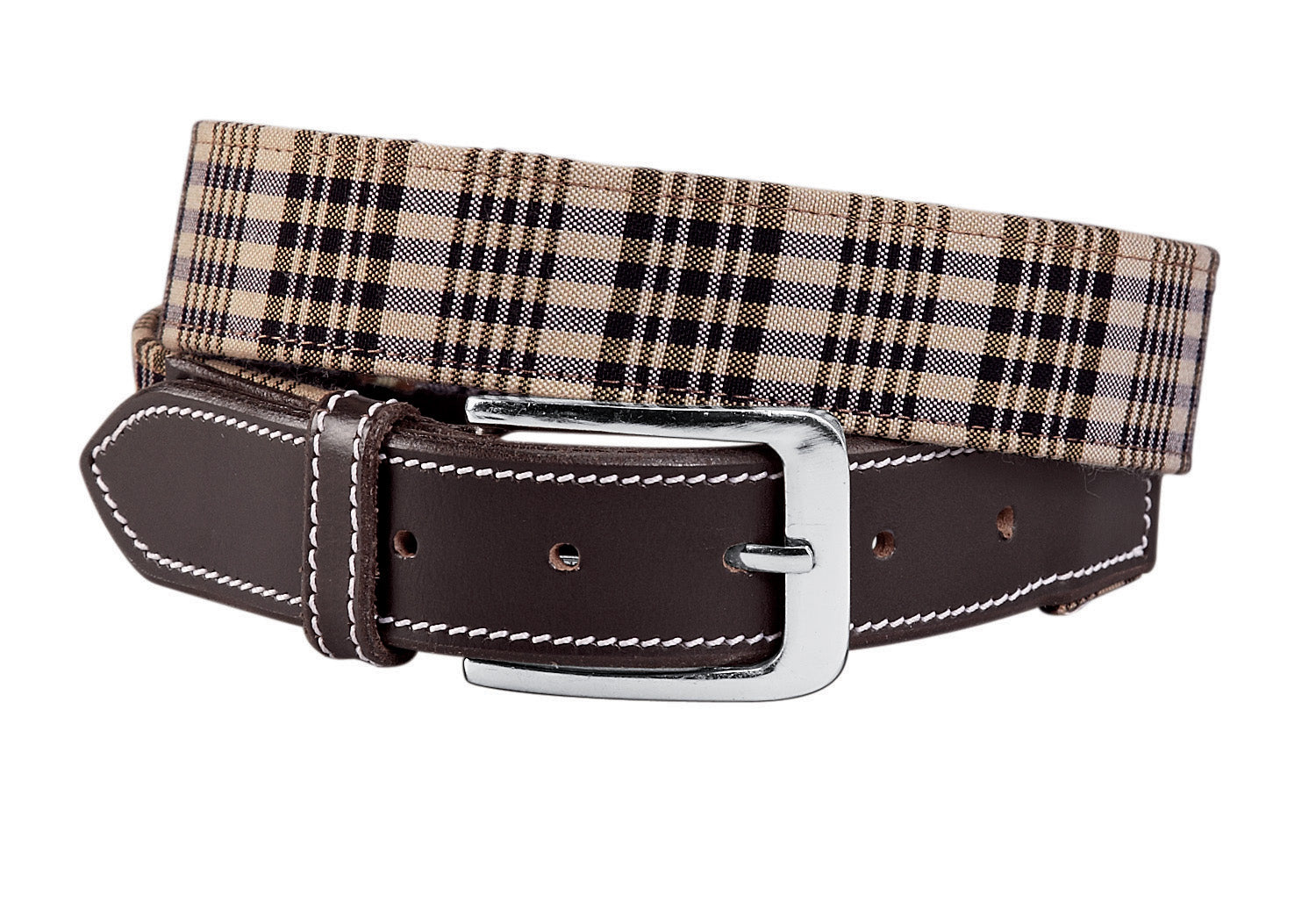 Put the finishing touch on your look with the Baker® Classic Plaid Belt. An iconic pattern in the equestrian world, Baker plaid adds a traditional, yet stylish touch to your riding outfit. This 1 1/2" wide brown leather belt is wrapped in the plaid and finished with contrast stitching on the leather, silvertone buckle and keeper. It’s authentically detailed with the original, red 5A Baker logo patch.