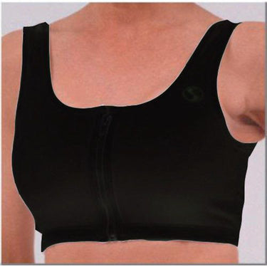 The Sporteze® Minimal Bounce™ Dri-Release® Zip-Front Bra is popular with riders thanks to its comfortable, cupless design and locking zipper for easy on and off. This sports bra features soft straps that won’t dig into your shoulders and supportive construction ideal for athletic activity. It’s breathable, cool, soft and shrink- and pill-resistant, with a scoop back that won’t show under most sleeveless tops. Odor neutralizing properties help keep you fresh and then help release odors in the wash. Runs small; extended sizes available.