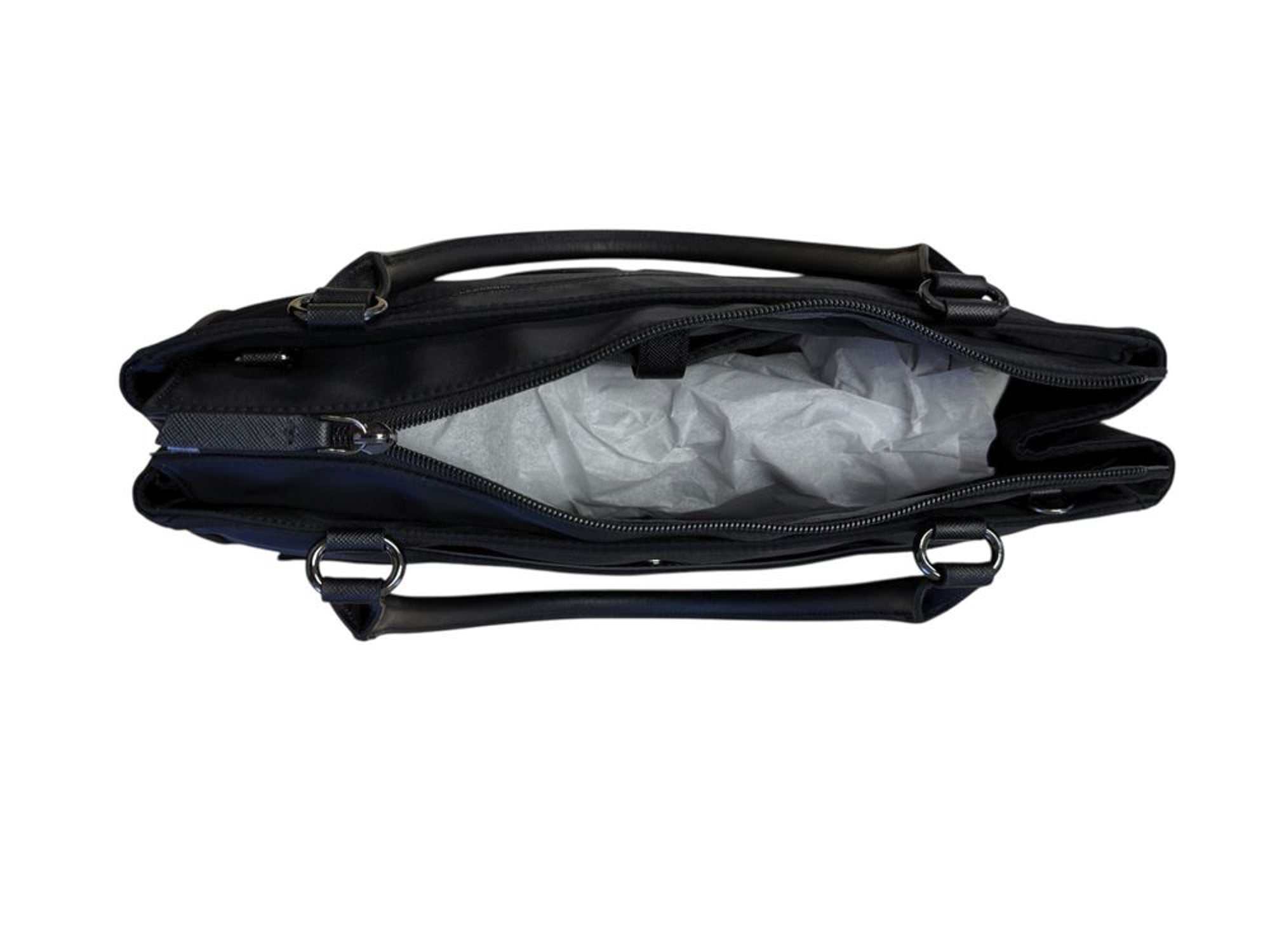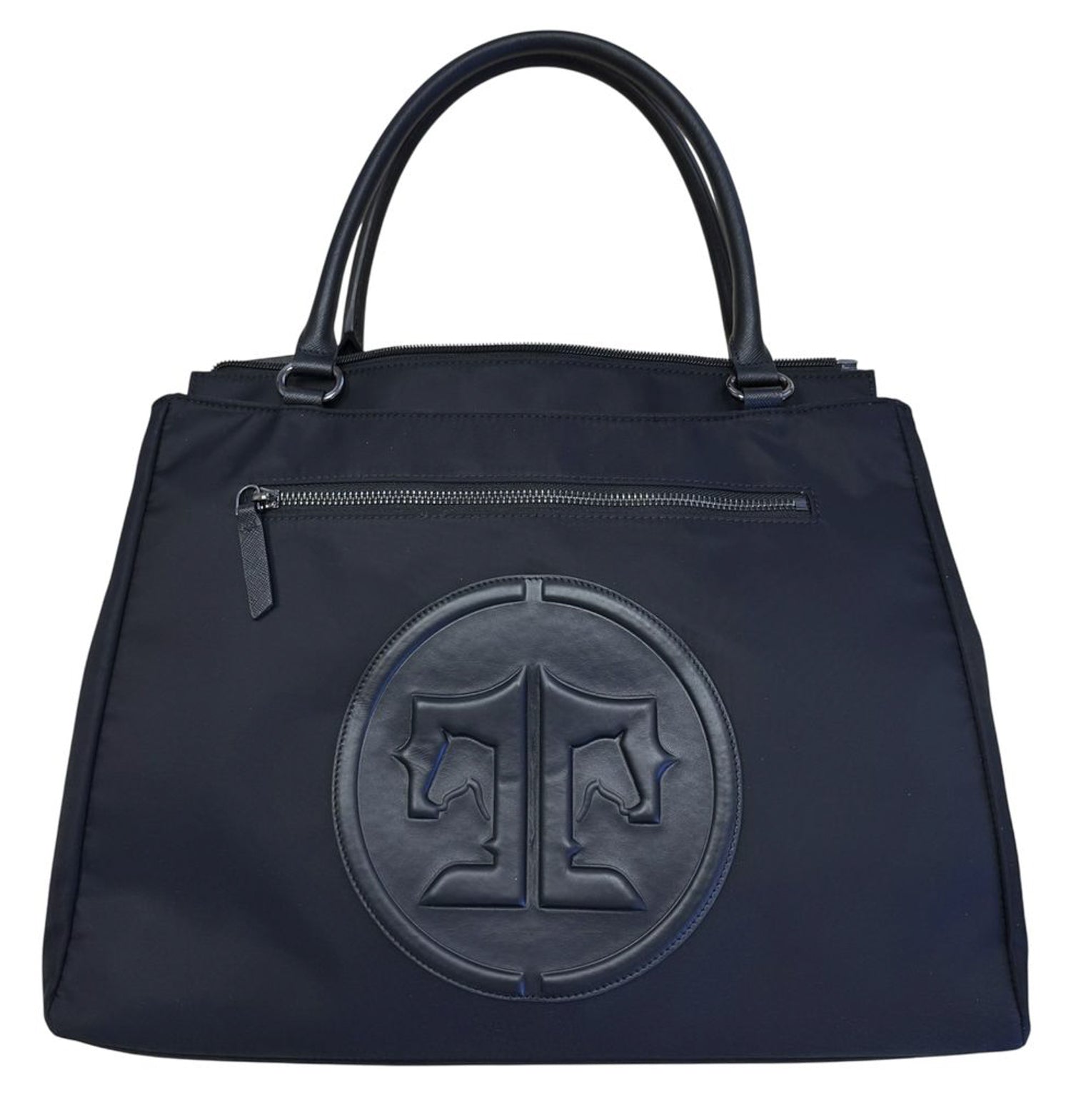 Carry your equestrian style to your work spaces and beyond in our Tucker Tweed Equestrian™ Large Office Tote. This nylon/leather upscale tote is a pocket powerhouse! Interior pockets for laptop, drink, phone, cords and more. Exterior completed with gunmetal hardware, matching zipper pockets both front/back and trolley sleeve. Includes adjustable shoulder strap. Fits 15"PC/16" MacBook size laptop.