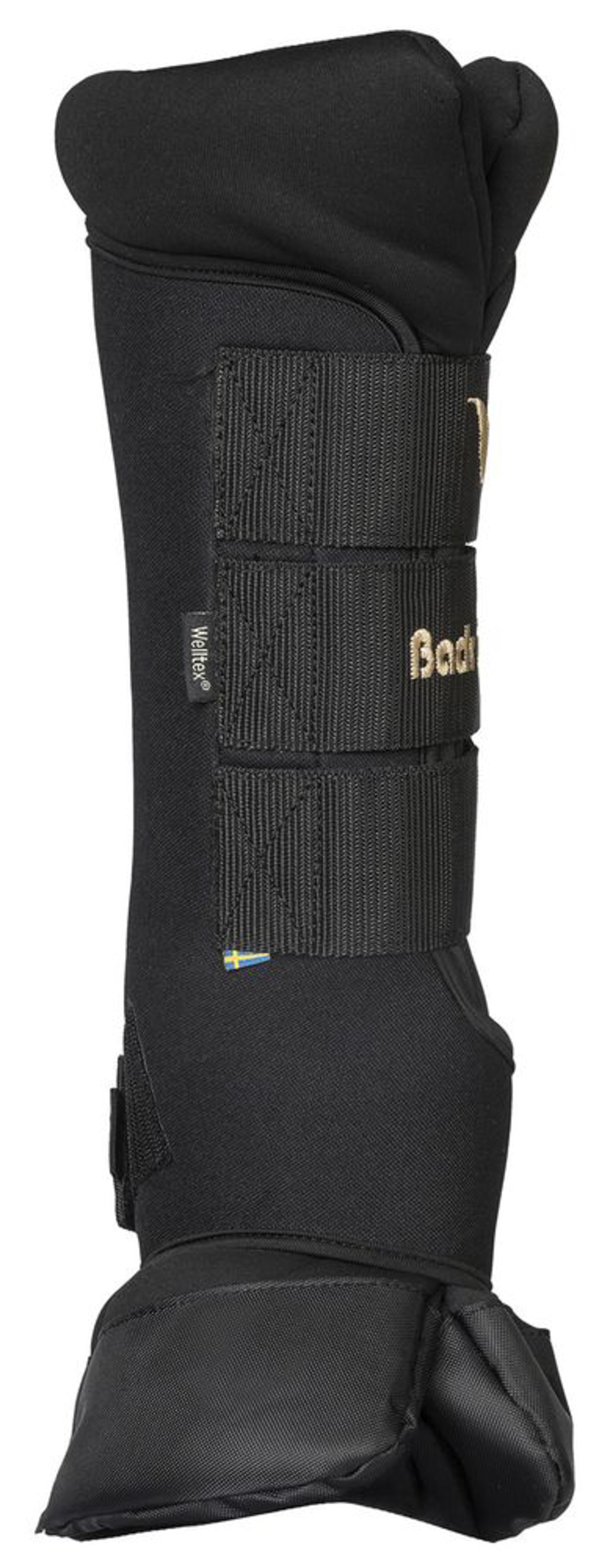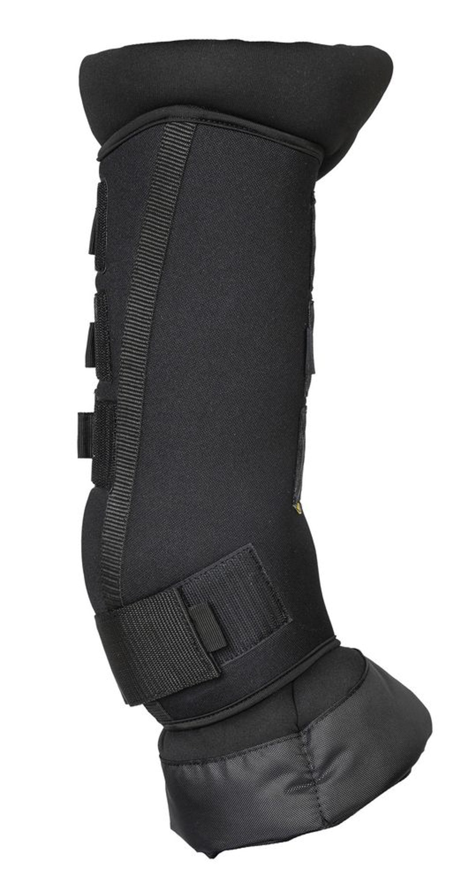 This Royal Deluxe version is an improved design that is anatomically shaped for the best possible fit, support and comfort. They are slightly higher at the top to minimize pressure on the tendon and provide increased freedom of movement to the horse’s legs. The inner pad has been fitted at the bottom with a reinforced water-repellent fabric that covers the top of the hoof, does not collect shavings and stays dry.