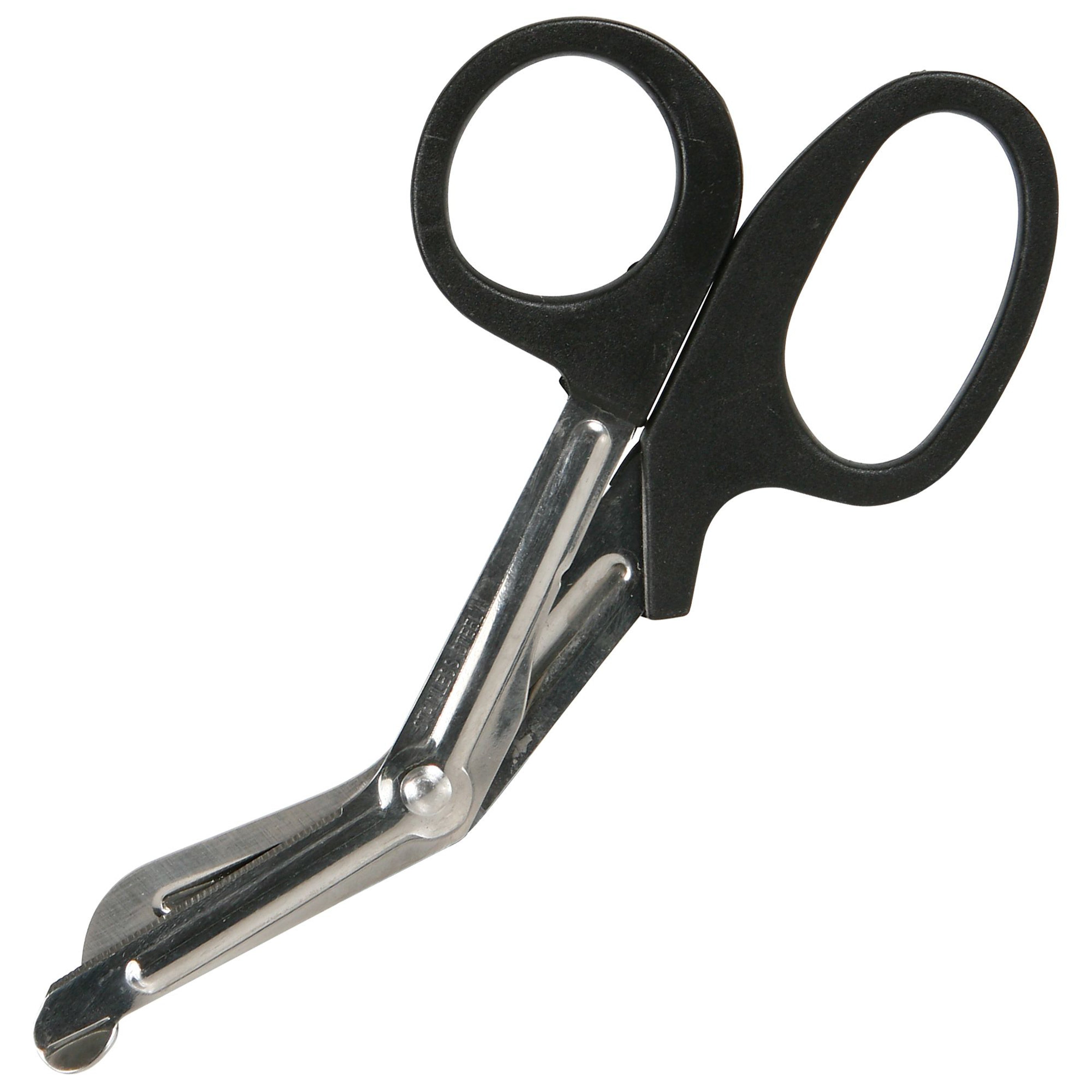 A staple for every equine medical kit, these Bandage Scissors make cutting away bandages and hoof wraps easier and safer. Plastic handles and stainless steel blades angled away from the area of cutting. Safety knob at end.