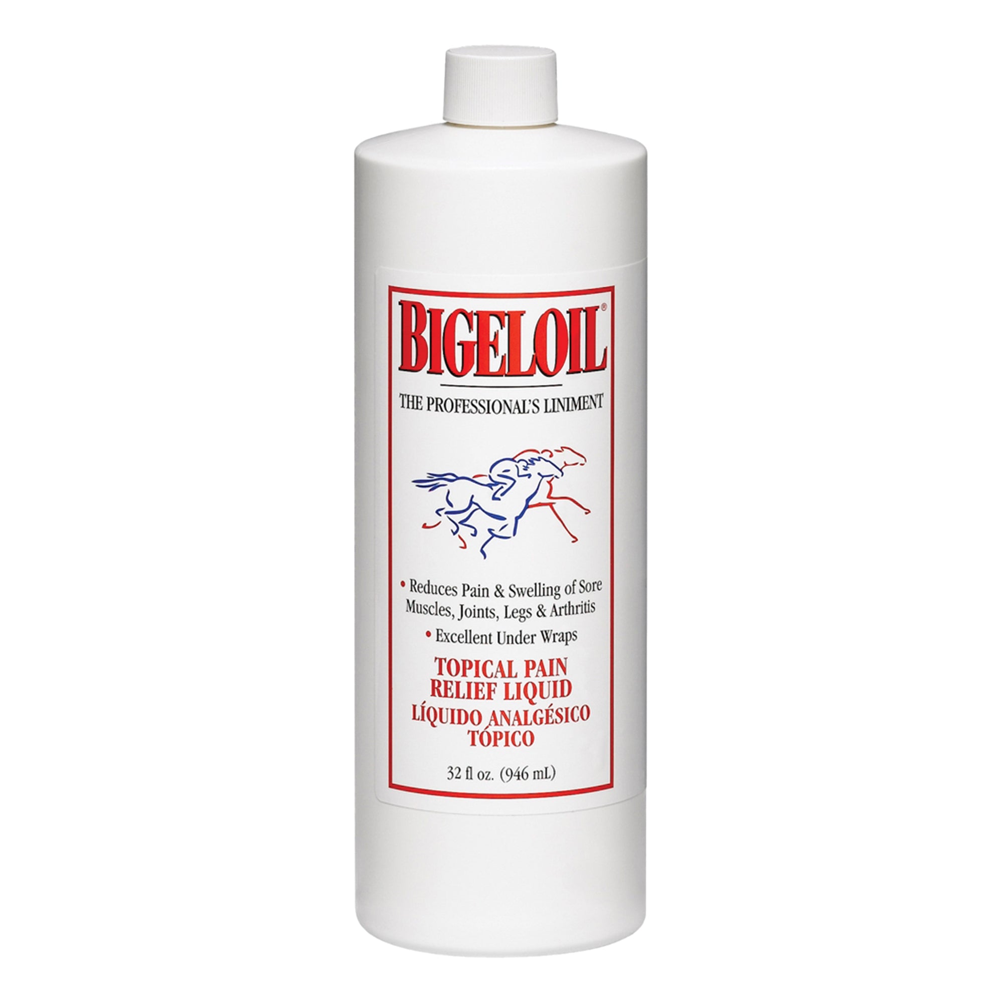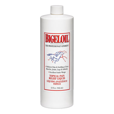 Bigeloil® horse liniment helps reduce swelling and ease soreness from fatigue or strain as it refreshes and cools. Used as an invigorating rub, Bigeloil can be applied directly to a horse’s legs without dilution. This horse liniment can also be diluted with water and used as a refreshing brace or body wash to soothe tired horses after strenuous activity. Pleasantly scented, it quickly helps stimulate superficial circulation and offers antiseptic and antibacterial qualities. Quart.