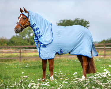 The Amigo® Ripstop Hoody Blanket by Horseware® Ireland acts as a barrier to protect your horse from summer skin irritations. Strong, breathable 600 denier ripstop poly material offers 90% UV protection. A silky lining at the shoulders, mane and tail flap lining helps protect against rubs.
