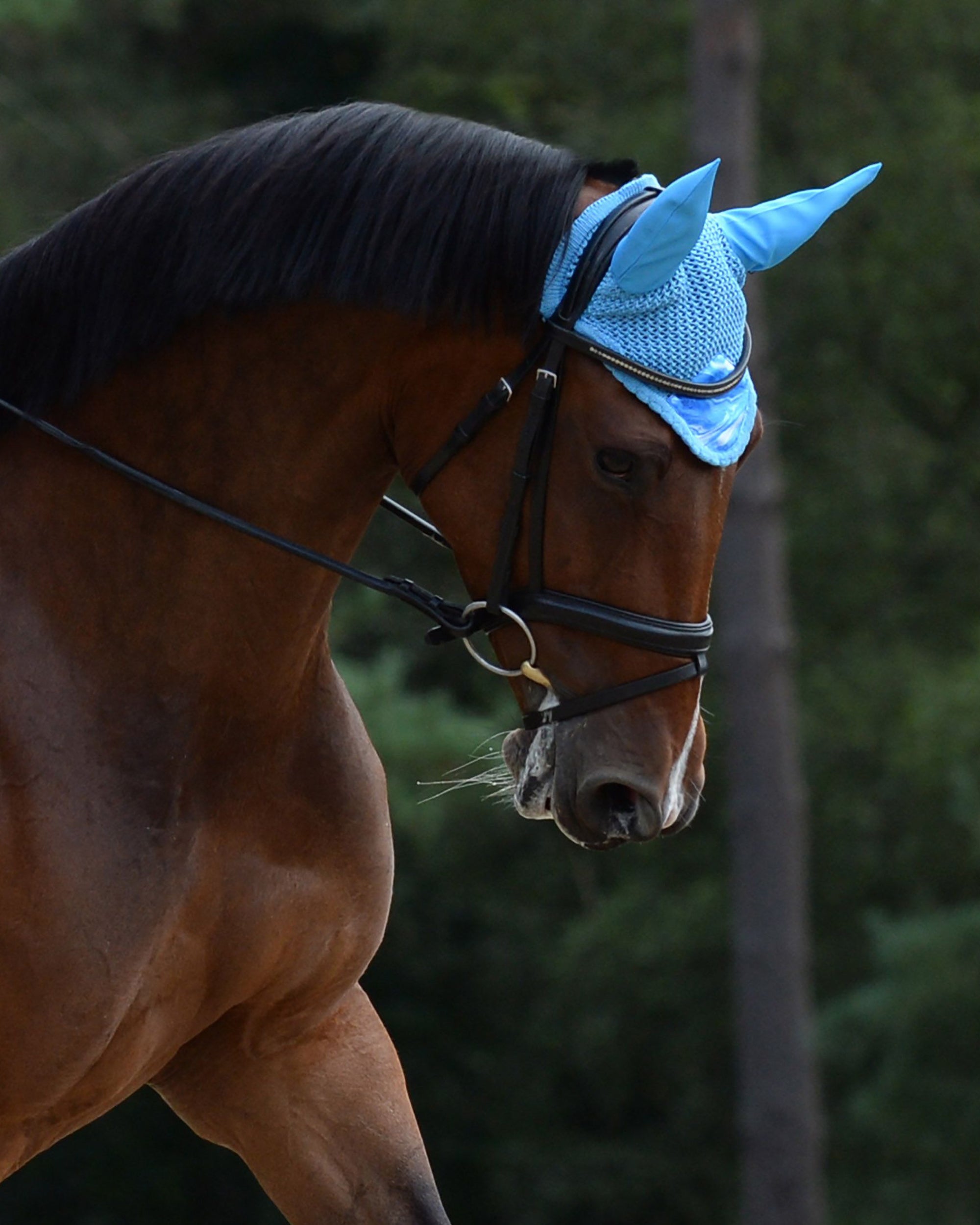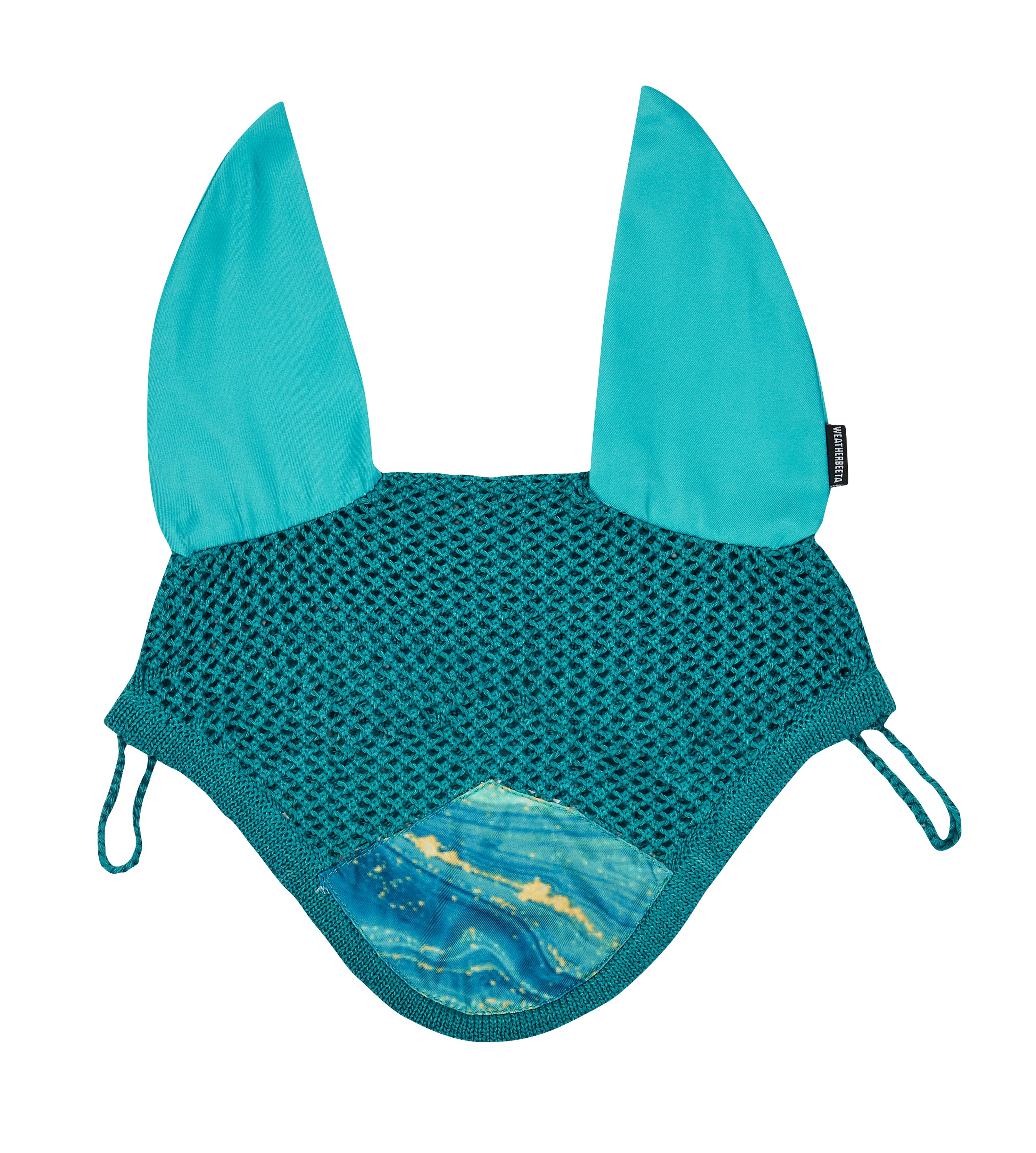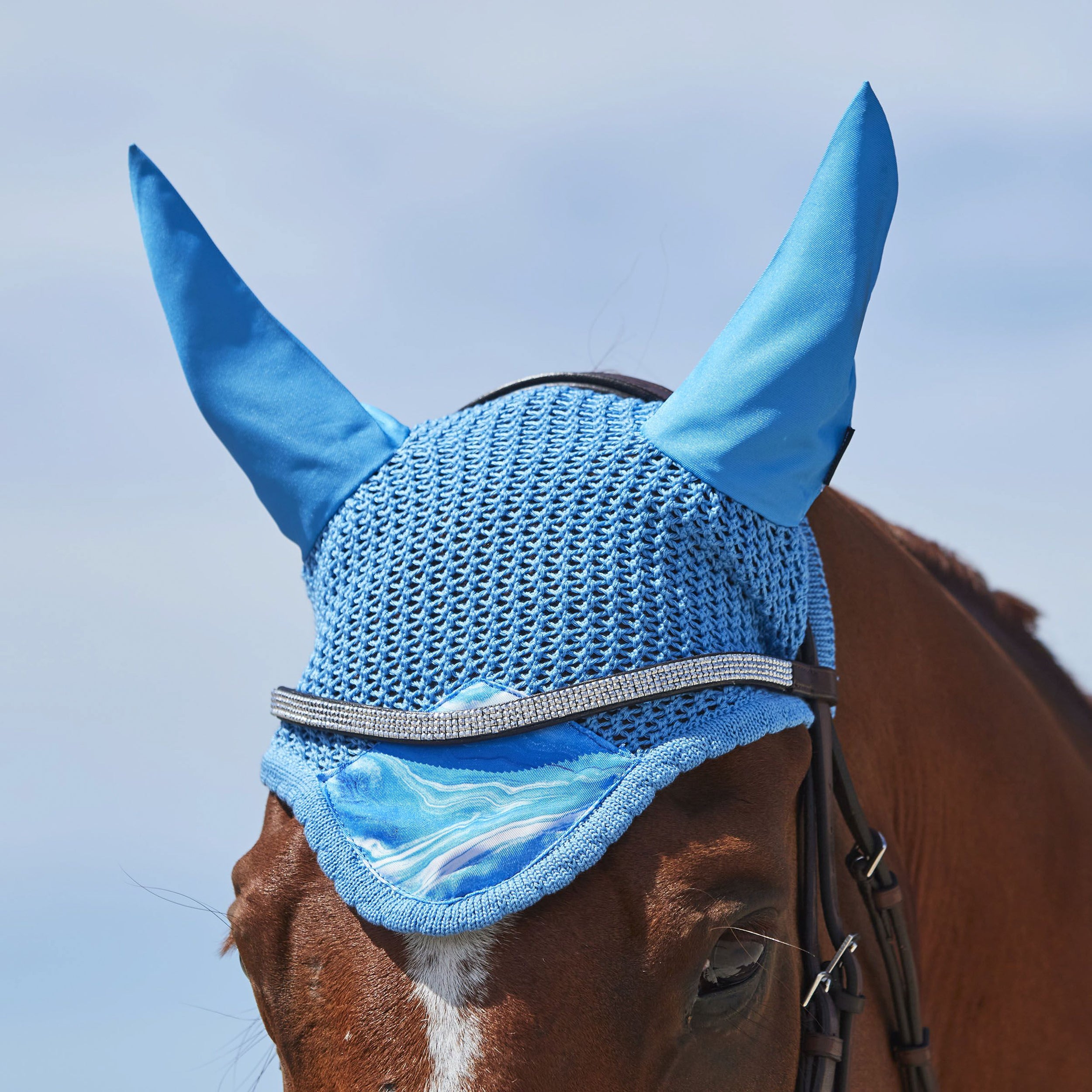 Breathable, lightweight and eye-catching, this WeatherBeeta® Prime Marble Ear Bonnet features a vibrant marble print fabric at the front. The crochet body has a stunning cross stitching design; high-density cotton drill ear covers help reduce noise. Loops on both sides to secure the bonnet to the horse’s bridle.