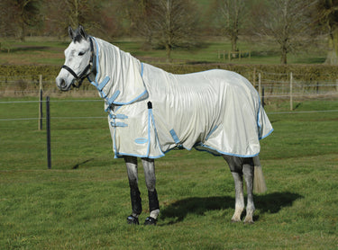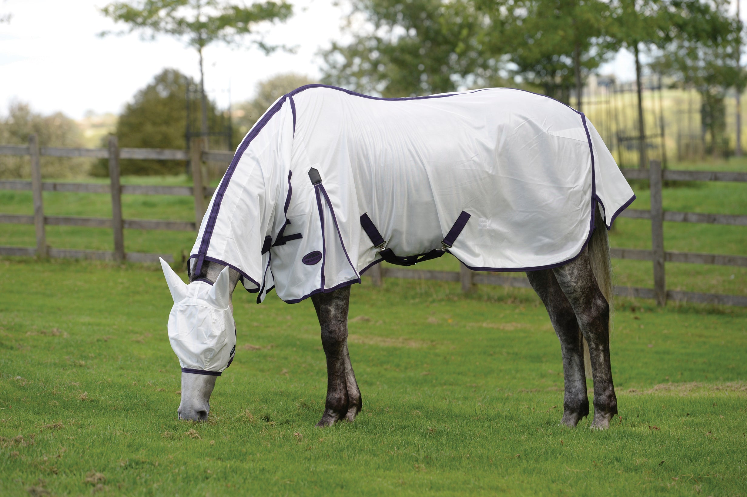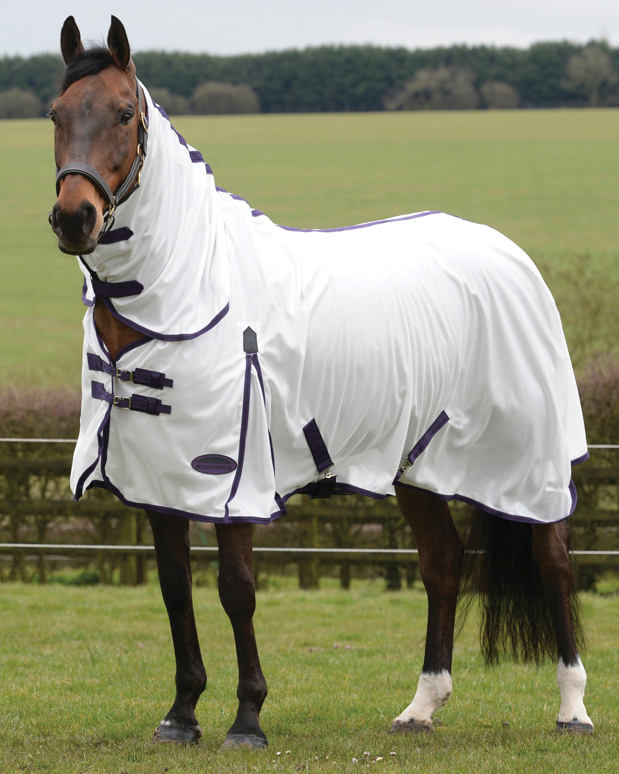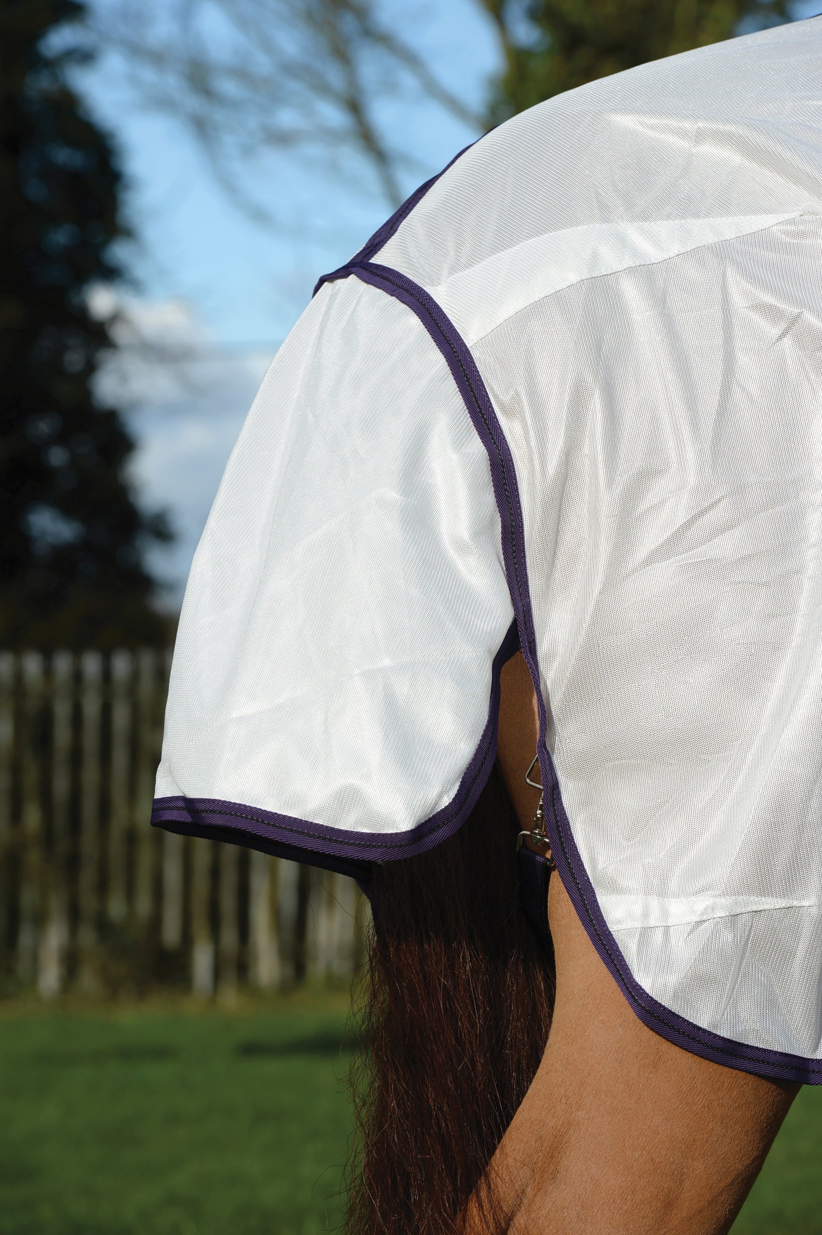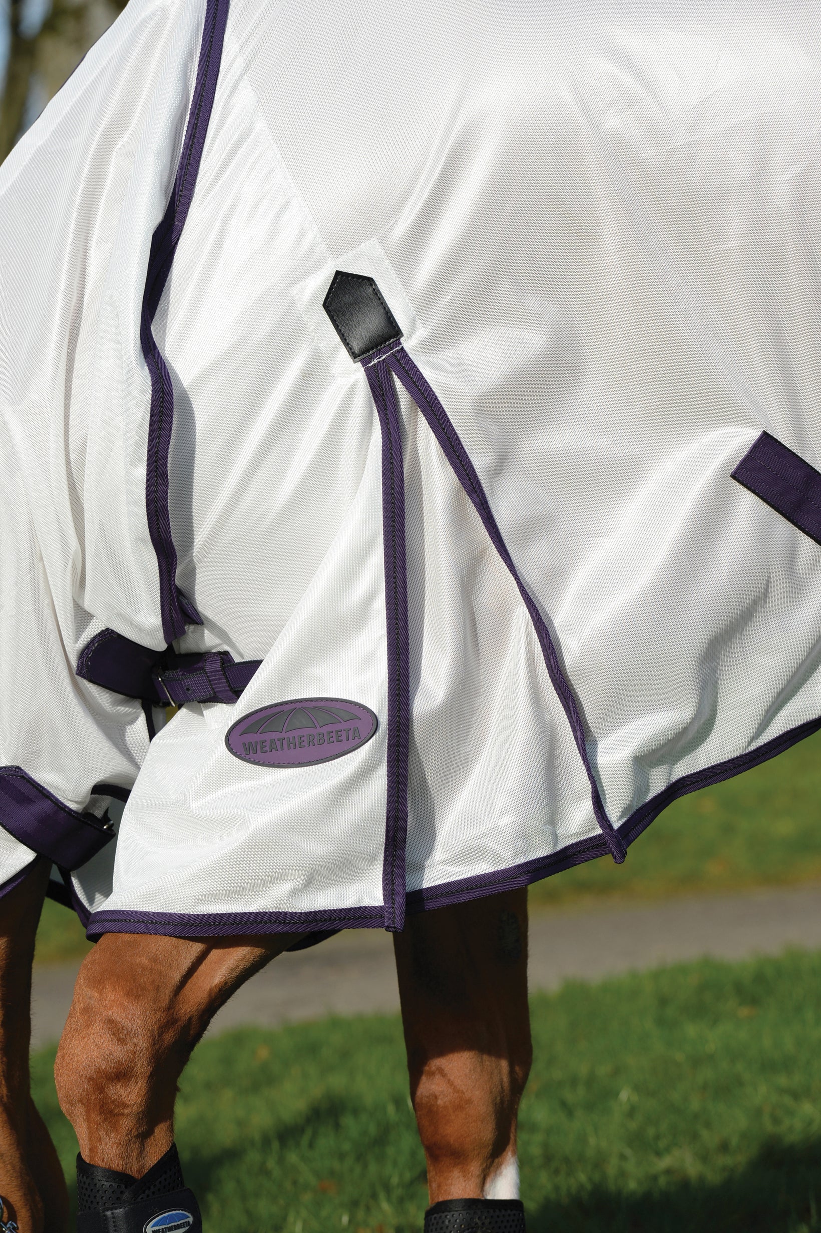 The WeatherBeeta® ComFiTec™ Essential Mesh II Combo Neck in soft mesh offers protection against flies. This sheet is breathable, cool and blocks 65% of ultraviolet rays. A 210T nylon lining at the shoulders, mane and tail help to protect hair, while traditional side gussets allow natural movement.