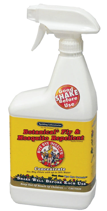 Bye Bye Insects™ Fly & Mosquito Repellent has a formula based on essential oils and represents a great natural alternative to pyrethroid/chemical sprays. It works as well or better than some synthetic fly sprays to repel house flies, biting stable flies, mosquitoes and deer ticks. This great-smelling repellent can be used to protect both horses and humans. It comes ready to use in a spray container, but can be diluted with water up to 50%.
