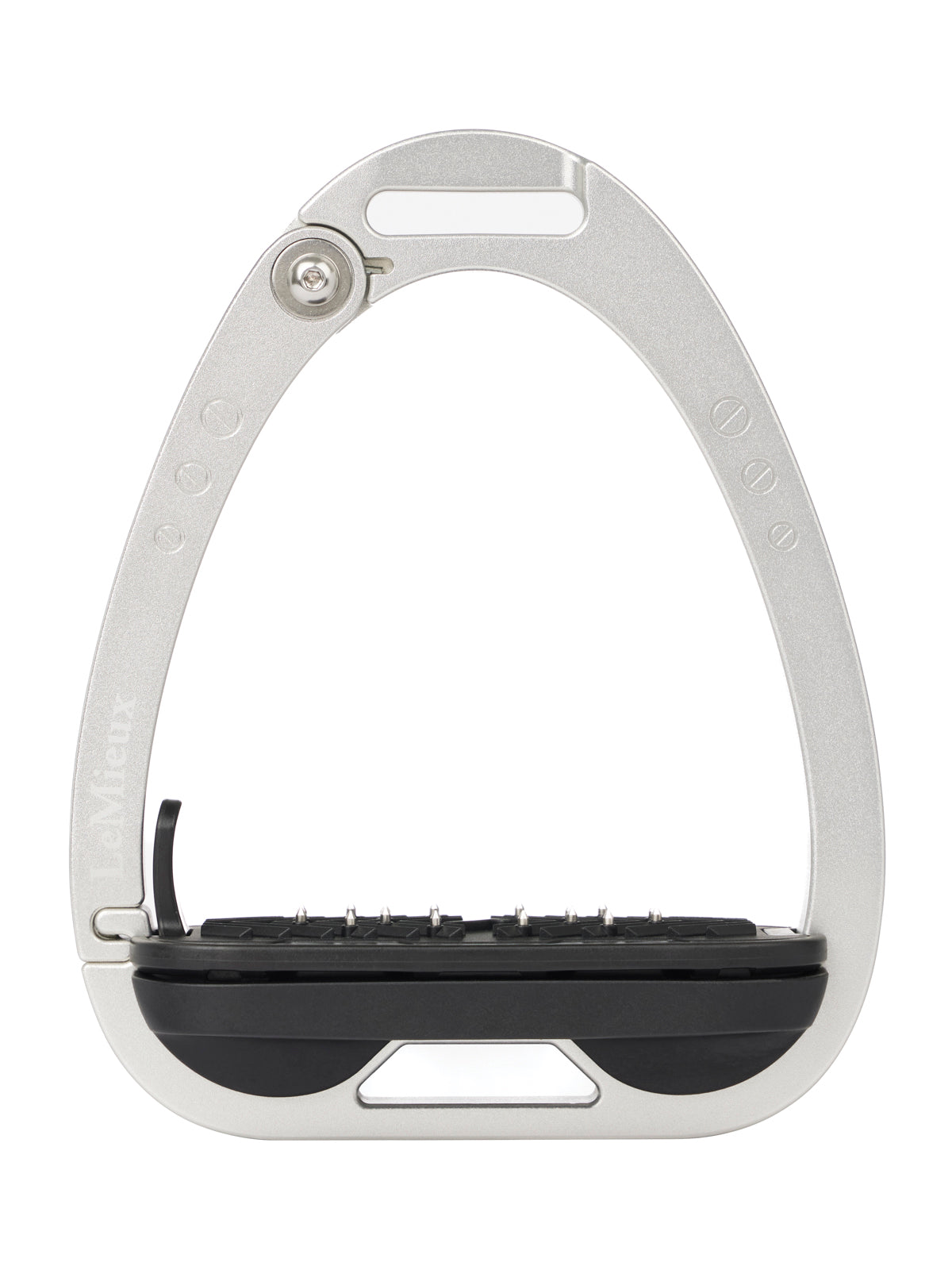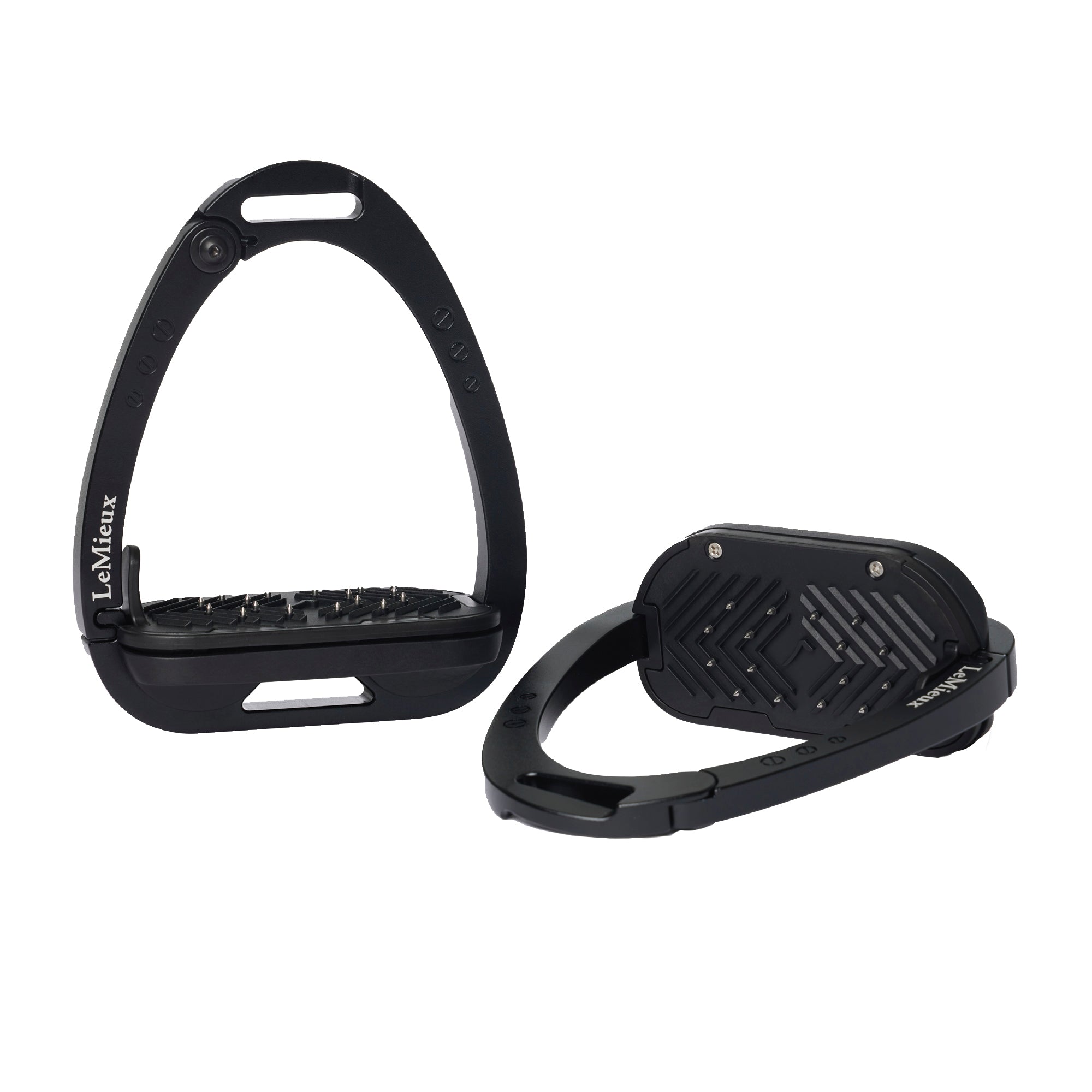 Lemieux® Vector Control Stirrups are a new generation of stirrup - technically advanced and lightweight, but retaining a classic style expected from LeMieux. Machined from aviation grade aluminum offers an impressive strength-to-weight ratio, making them lighter than most stirrups on the market at just 419g each, whilst not compromising on stability. The ergonomic footplate of the Control Stirrup is set at 0° with a cross-track grip surface with embedded hardened steel pins to provide maximum security for the boot. The footplate is supported by a twin-balance arch system that distributes the weight evenly across the base of the stirrup frame. The apex of the frame is recessed and off-set, encouraging a 45° outward orientation which makes it easier for the rider to locate the optimum angle for the foot and regain a lost stirrup. An integrated hinged arm has a two-stage release system, preventing unintentional opening. The spring-loaded arm locks into the base of the main frame meaning that when under maximum pressure, such as landing over a fence, the rider's weight is spread evenly across the stirrup, preventing the outside from dropping and flexing. When pressure is put onto the arm of the stirrup, the arm releases allowing the foot to come out of the stirrup, minimizing the risk of dragging. The stirrup arm breakout force = 36N (equivalent to 3.62kg) in testing, meaning enough resistance to stop it from opening unintentionally, but will release when needed. It's important to note that no stirrup of this design (with a quick-release arm) is 100% guaranteed to open in the event of a fall. There are several factors, including a fall of the horse, a loose girth causing the saddle to slip, or a slow or unusual angle of exit that may not generate enough lateral force to open the release arm. This is very rare but users must be aware that no stirrup is completely foolproof in every eventuality. Competition Legal (FEI, British Dressage, British Eventing and British Showjumping).