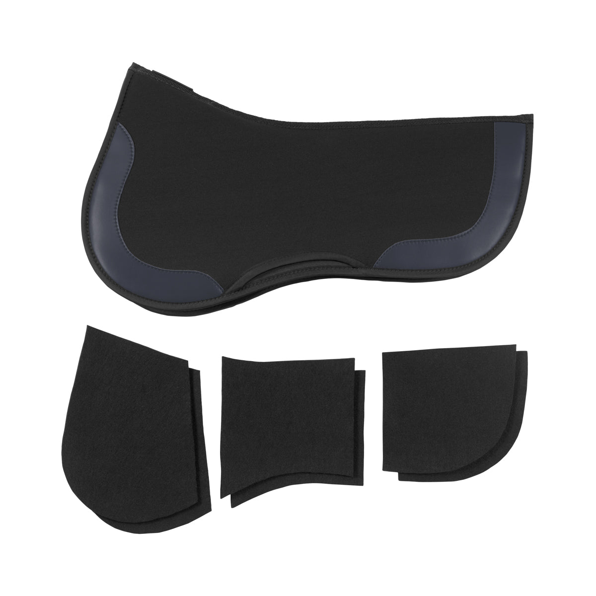 The EquiFit® Thin ImpacTeq® Half Pad with Shims was designed with suggestions from top riders and professional saddle fitters. The technology provides a unique combination of comfort and protection for your horse’s back to optimize performance and recovery. Because this half pad can be shimmed, it is an outstanding solution for correcting saddle fit, for riders who use one saddle on multiple horses and for any horse whose back is changing. It can be particularly helpful with young horses and those returning to work after time off.