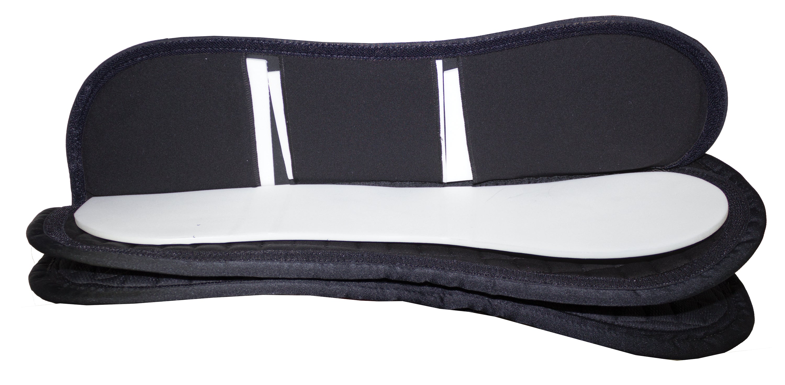 The Kavalkade Kavaltop Vario Shim Half Pad has extra versatility to meet your horse’s needs in adjusting the way a saddle sits on the back. Internal elastic pockets hold five differently shaped pad inserts to create the corrections in fit. The design also offers shock absorption and effective pressure distribution.