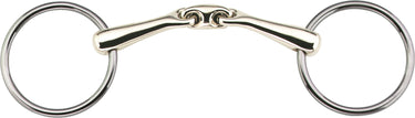 The Herm Sprenger KK Ultra Sensogan® Loose Ring Bit has a 18mm Sensogan mouthpiece with a center link that is rotated 45° to rest smoothly on the tongue. This design helps promote a sensitive and precise connection between the rider and the horse. Stainless steel rings are 70mm.
