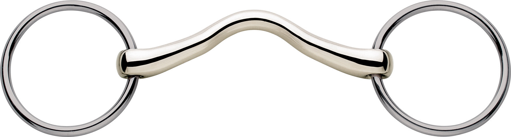 The Herm Sprenger Comfort Mouth Sensogan® Loose Ring Bit features the innovative Sensogan mouthpiece metal. As a result of ongoing research and development, experts at Herm Sprenger have created Sensogan for a mouthpiece that offers all the benefits of Aurigan®, yet retains its discreet and elegant silver color much longer. Like Aurigan, Sensogan promotes a delicate and sensitive connection to the horse. It instills a pleasant taste, encourages salivation and promotes bit acceptance. It also significantly regulates the oxidation process to allow the bit to maintain its beautiful color. Distinctively unique, this metal is a propriety blend of copper, zinc and manganese. A reduced copper content allows some oxidation to occur, but the addition of manganese regulates and slows oxidation which in turn slows discoloration. Manganese is also an important micronutrient for horses, as a crucial component and activator of enzymes. All Sensogan bits are marked with a black ring at the cheeks. With the Herm Sprenger Comfort Mouth Sensogan® Loose Ring Bit, it’s all about comfort. This bit has a correctional ported mouthpiece that rotates onto the horse’s tongue rather than the palate, yet provides plenty of space for the tongue. This design can be helpful for horses that get their tongues over their bit or that try to stick them out while being ridden. It has a 16mm Sensogan mouthpiece and 70mm stainless steel rings.