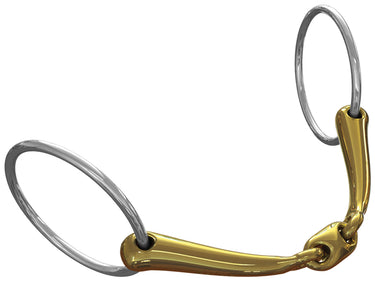 The Neue Schule Tranz Angled Lozenge 16mm Loose Ring Bit is ergonomically designed for comfort and communication. A popular dressage mouthpiece, it encourages a true, consistent contact and a higher level of responsiveness. The rounded center lozenge is set at a 20° angle to activate feel over the tongue. When contact is taken, the lozenge rolls gently down to contour smoothly over the tongue’s thicker, less sensitive center, thereby enabling clearly defined rein aids. Arms are slightly curved for comfort and oval shaped to take up less room between the tongue and upper palate than circular mouthpieces. This design may help to create a larger upper airway, enhancing the horse’s ability to breathe and swallow, which may make it helpful for event horses in addition to dressage horses. 16mm Salox® mouth and 70mm stainless steel rings. Neue Schule bits offer high performance and superior comfort for all horses in any discipline and at every level. Created for enlightened riders, all the inspired bit designs feature mouthpieces made of Salox® Gold, a high copper alloy specifically formulated to rapidly reach and maintain the temperature of a horse’s mouth, encouraging softness and relaxed acceptance. This attractive metal has anti-tarnishing properties to maintain its luxurious look. Driven by the needs of the horse and rider, the “new school” bit design philosophy involves the creation of ergonomic mouthpieces that are engineered using the latest CAD technologies for exceptional comfort and effective communication.