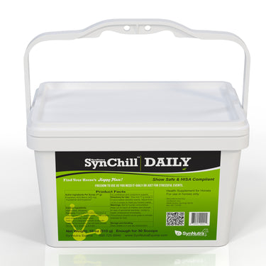 Help your horse deal with stressful situations with safe and easy SynNutra Equine® SynChill™ Daily Pellets. SynChill Daily™ is a proprietary blend of natural amino acids and Tryptophan, developed to be a synergistic approach to promoting the feeling of well-being to the nervous or anxious horse. Supplementing daily helps the key ingredients achieve a higher level.