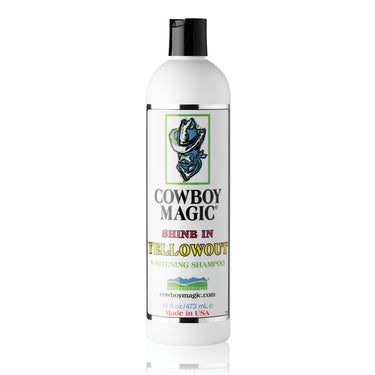 Neutralize yellow stains and brighten your horse's hair with Cowboy Magic® Shine in YellowOut™. Besides removing yellow stains, it gives dull horsehair a more brilliant sheen and leaves it silky, shiny and smelling good. Yellowout works well on every color of horse. Pt.