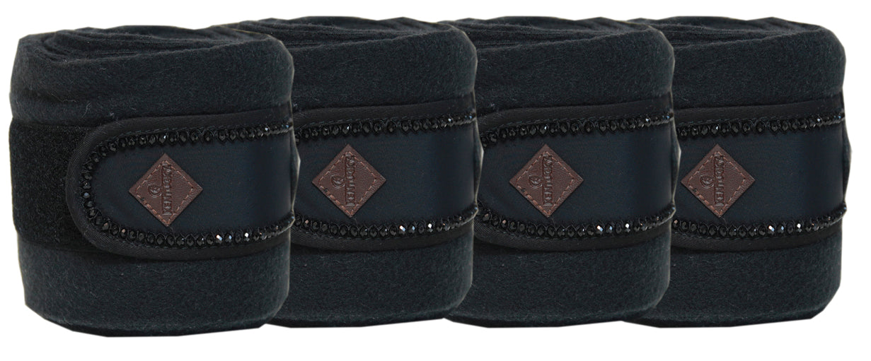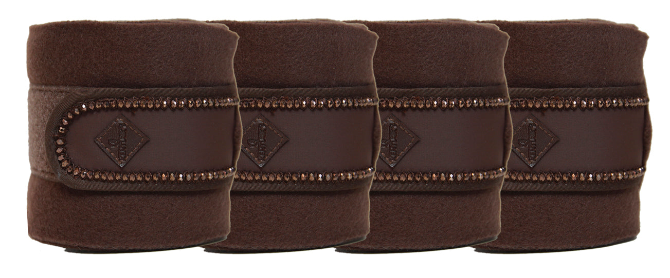 Kentucky Horsewear Pearl Polo Wraps in high-quality, mid-weight Polar Fleece resist pilling. Each secures with a tonal, faux pearl-trimmed Velcro® brand fastener. Set of four polo bandages arrives in a reusable zipped storage case.